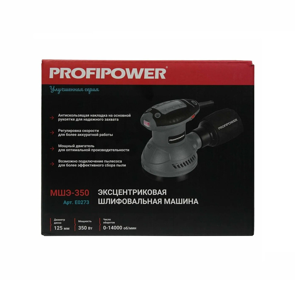 Описание шлифмашины эксцентриковой Profipower МШЭ-350, 125 мм, щеточный двигатель, 350 Вт