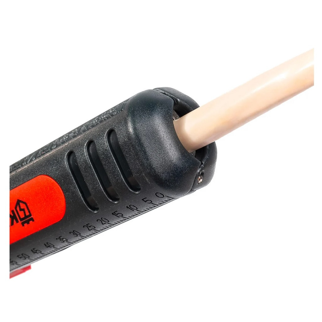 Инструмент КВТ WS-21 механический, двухкомпонентные рукоятки, для снятия изоляции создан для быстрого и безопасного снятия изоляции с проводов. Аккуратная работа без повреждения провода. Острое регулируемое лезвие точно разрезает изоляцию по кругу. С этим инструментом Вы избегаете царапин и насечек на самих токопроводящих жилах, что гарантирует надежное соединение и предотвращает обрыв провода. Двухкомпонентные рукоятки удобно лежат в руке и не скользят. Инструмент КВТ WS-21 позволяет работать намного безопаснее, чем нож, так как лезвие контролируется. Риск порезаться или повредить проводник сводится к минимуму.