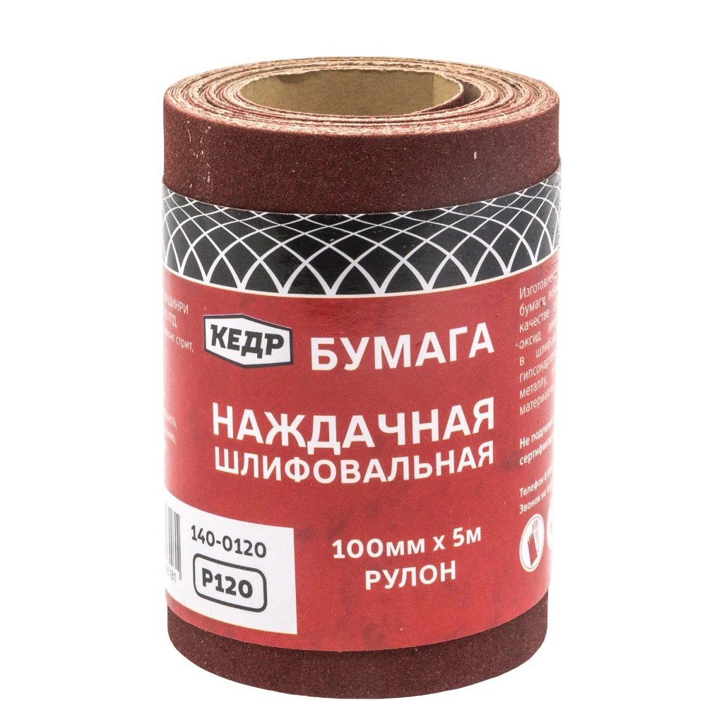 Бумага наждачная Кедр 140-0120, шлифовальная, ширина 100 мм, Р120, рулон 5 м в Москве