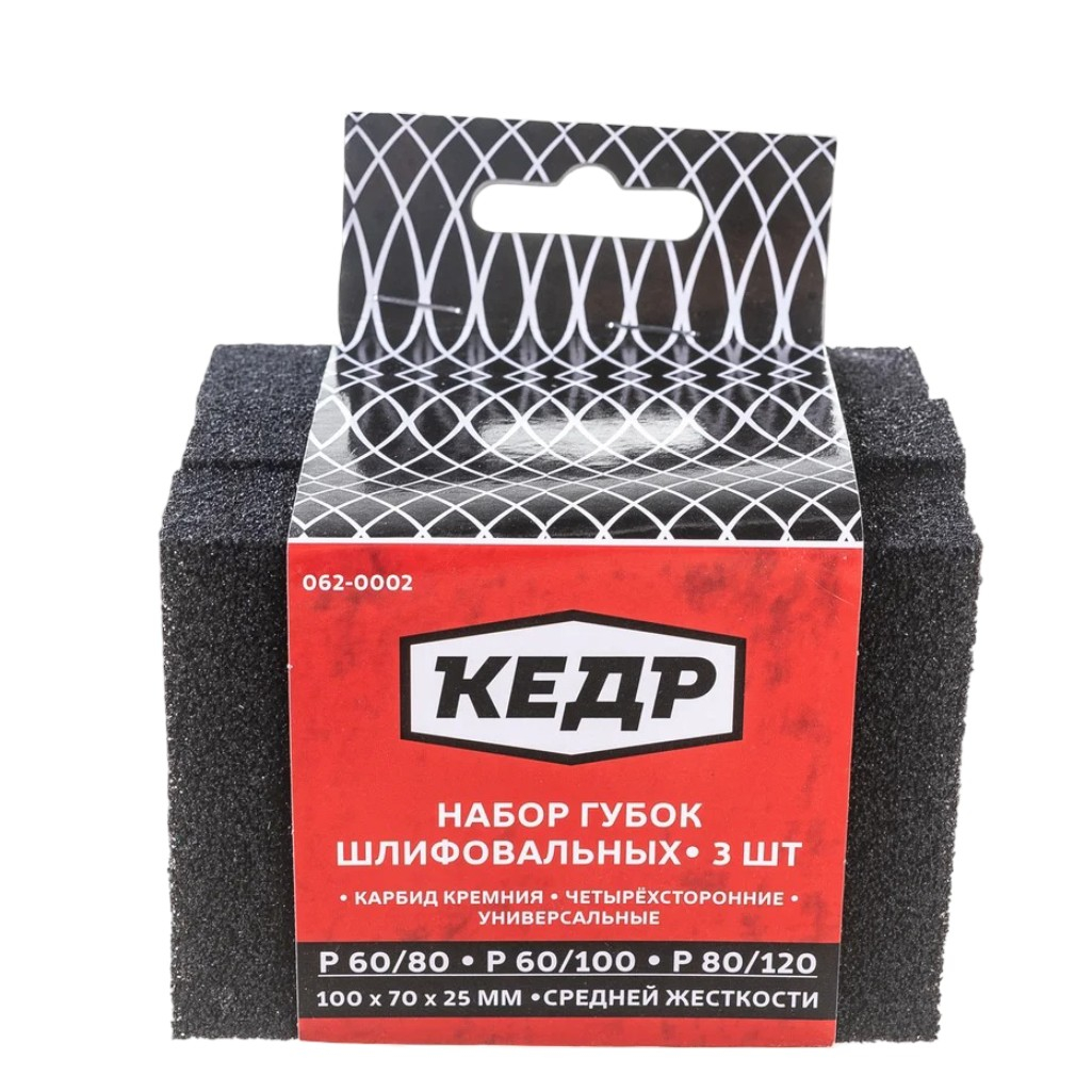 - Набор губок для шлифования КЕДР средней жесткости P 60/80, P 60/100, P 80/120, 100мм*70мм*25мм 3шт/у
