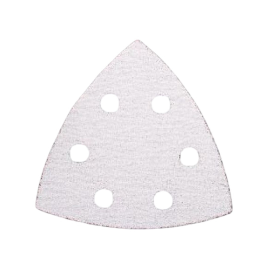 Лист шлифовальный Gepard GP5005-320, перфорированный, размер 93 мм, самоцепляющийся, Р320, в упаковке 5 шт изготовлен в форме равностороннего треугольника со стороной 93 мм и применяется для дельташлифмашин, которыми шлифуется фанера, ДСП, МДФ и любые другие породы древесины. Шлифлист имеет 6 технологических отверстий, которые обеспечивают быстрое вытягиванние и удаление пыли. Абразивная основа представляет собой покрытие из стеарата цинка, которое увеличивает прочность и эластичность. В качестве подложки используется ворсистый материал для липучки. Этот шлифовальный лист предназначен для обработки шпаклевки, а также для удаления старого лака и краски.