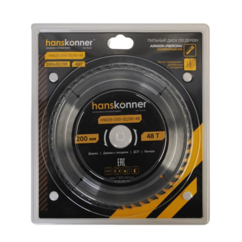 Диск пильный по дереву Hanskonner ArmorPiercing H9025-200-32/30-48T, 200х32/30 мм, 48 зубьев