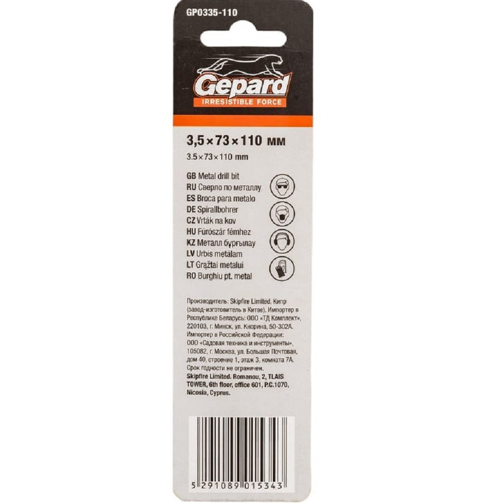 Сверло по металлу Gepard GP0335-110, 3.5х110 мм, удлиненное, хвостовик цилиндрический