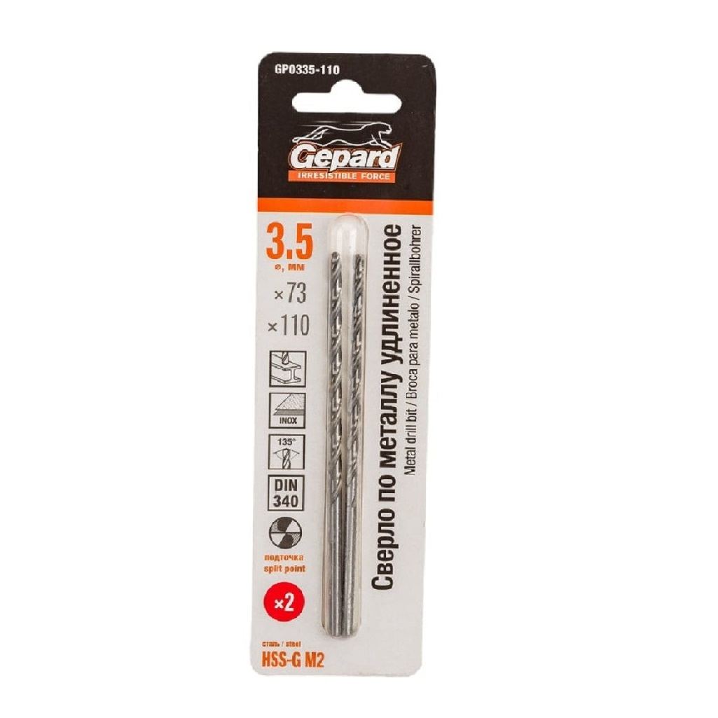 - Сверло по металлу удлиненное Gepard 3,5*110мм