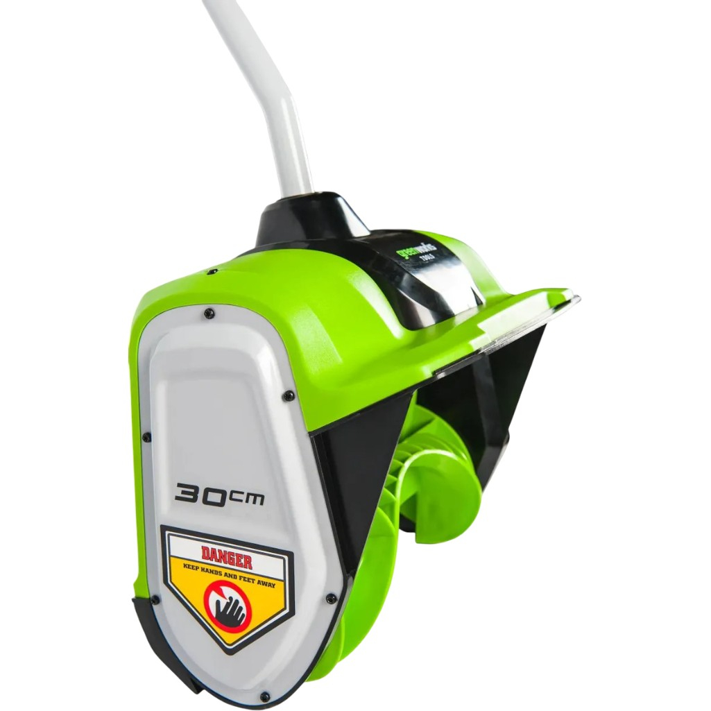 Снегоуборщик аккумуляторный Greenworks GD40SSK4 одноступенчатый, шнек пластик, 40В, 1 АКБ + з.у. - это аккумуляторная лопата для снега - компактная модель бесщеточного снегоуборщика, предназначенного для быстрой и эффективной уборки снега на приусадебных участках, частных домах и гаражах. Снегоуборщик оснащен передовым бесколлекторным двигателем,, который по мощности сравним с бензиновыми аналогами. Он характеризуется низким уровнем вибрации и шума, экологичностью, простотой в использовании. Такой двигатель в 10 раз надежнее традиционного щеточного электрического двигателя. Его производительность и мощность аналогичны бензиновым моделям мощностью до 1.2 кВт - это порядка 1.6 л. с. Одноступенчатая система шнека выполнена из ABS-пластика, что делает её легкой и долговечной, а также предотвращает повреждение декоративных покрытий. Снегоуборщик оснащен системой защиты от случайного включения и удобной дополнительной ручкой для надежного хвата. Модель работает от аккумуляторных батарей G-MAX 40 В и входит в линейку устройств этой серии. Емкость аккумуляторной батареи составляет 5 А*ч. Дальность выброса снега достигает 6 метров. Устройство включается одной кнопкой. Малый вес обеспечивает комфорт при длительной работе. Гарантия на снегоуборщик 3 года.