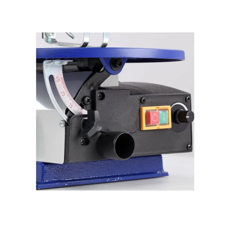 Частота ходов пильного полотна составляет 600-1300 ход/мин. Чистоту на рабочем столе станка обеспечивает система сдува пыли с линии реза, а оснащение патрубком для подключения к системе аспирации помогает защитить от пыли оператора и окружающее пространство в мастерской.