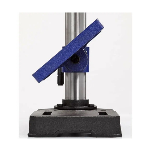 Скорость вращения шпинделя с ременным переключением. Заготовку легко закрепить на рабочем столе или основании в зависимости от ее размера. Стол фиксируется на стойке зажимом.