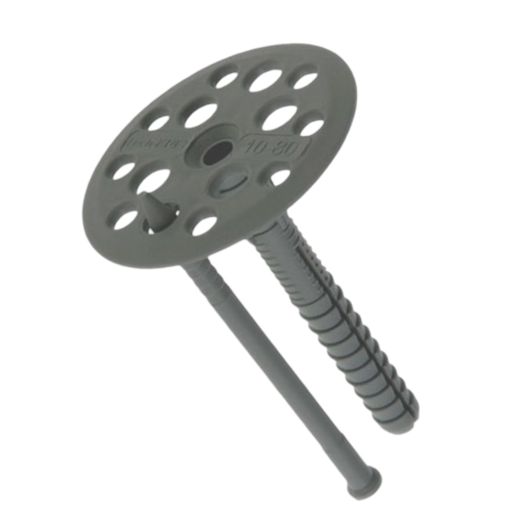 Дюбели с пластиковым гвоздем предназначены для крепления теплоизоляционных материалов к несущим основаниям из бетона, блоков и кирпича. Установка дюбеля производится с помощью молотка методом сквозного монтажа в предварительно просверленное и очищенное от пыли отверстие. Основание дюбеля изготовлено из высококачественного полипропилена, который выдерживает значительные нагрузки и удары. Гвоздь также выполнен из ударопрочного полипропилена. Специальная конструкция поверхности диска обеспечивает оптимальное нанесение штукатурки и упрощает процесс выравнивания.