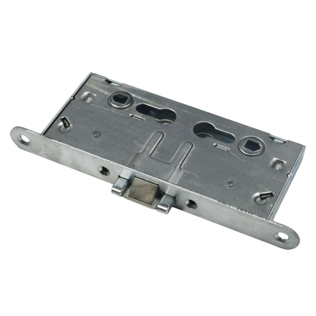 Врезной противопожарный замок устанавливается во входную противопожарную дверь врезным методом. Прочная конструкция обладает евроцилиндром и цилиндровым механизмом секретности. Замок крепится в полотно при помощи винтов.