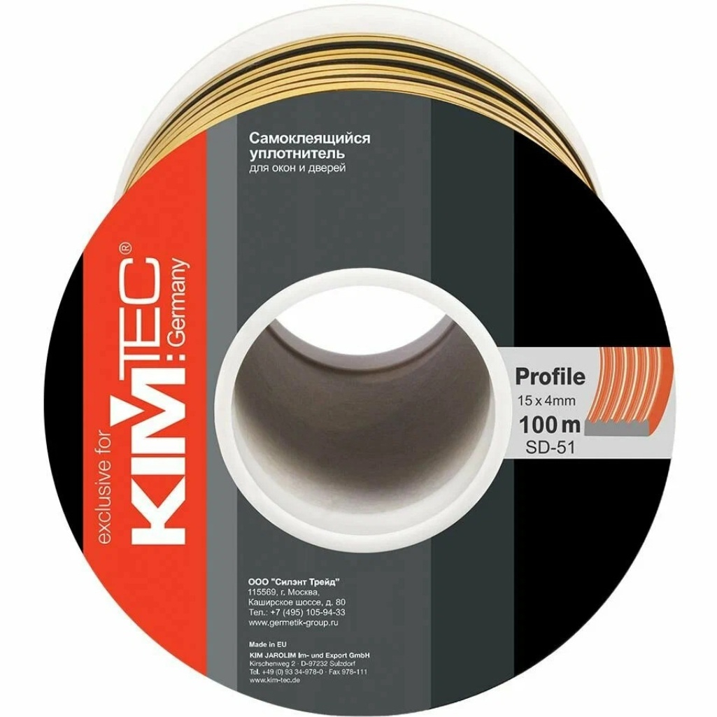 Уплотнитель самоклеющийся Kim Tec промышленный, SD-51/4-профиль, черный, 4х15 мм, на отрез от 1 м
