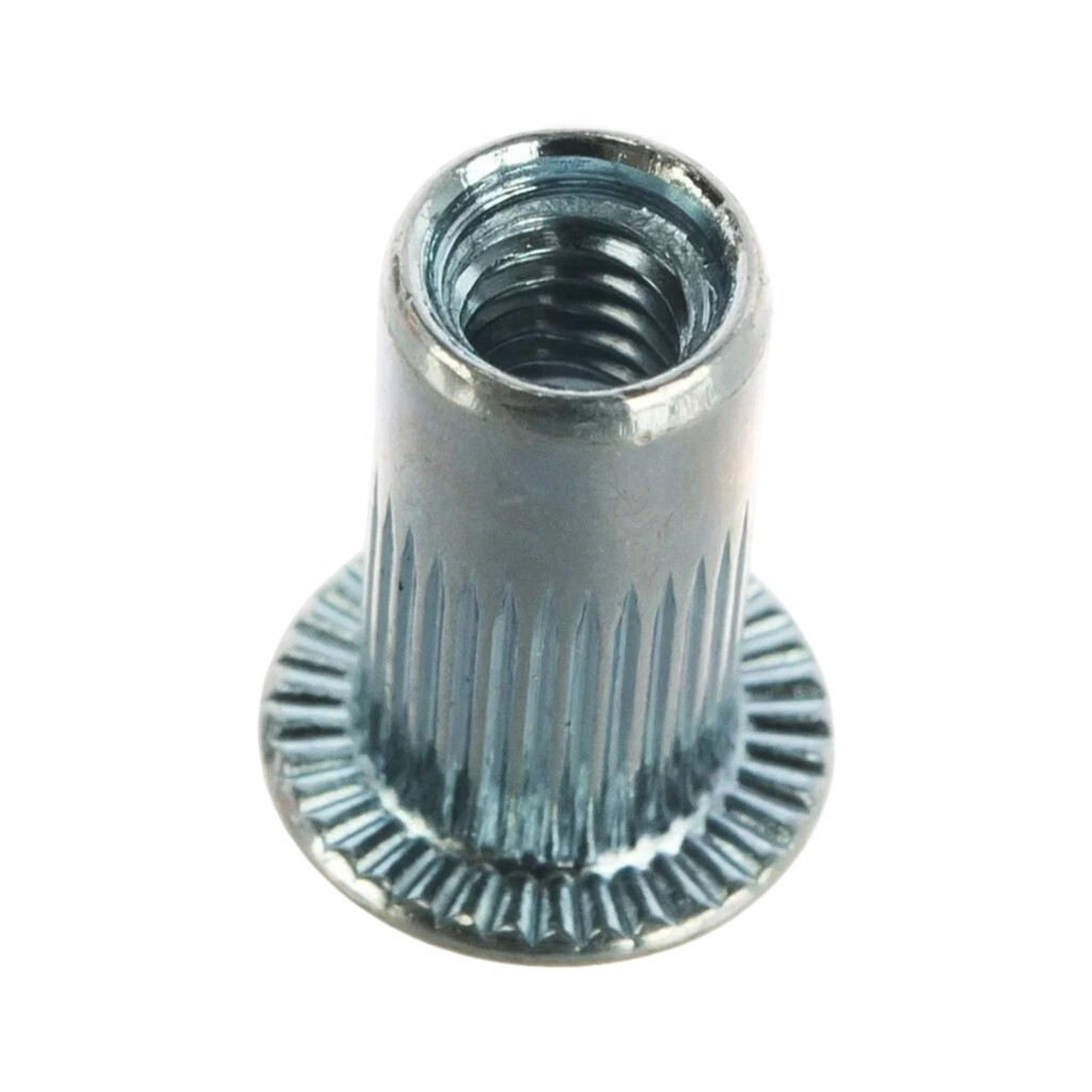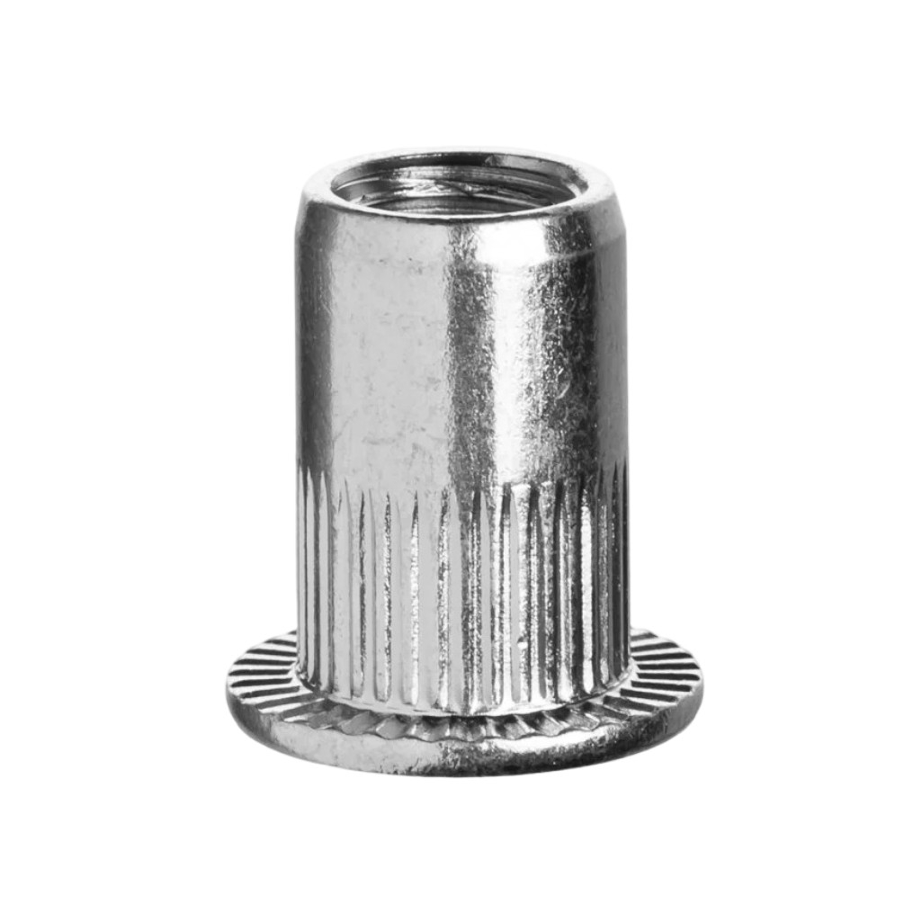 Заклепка резьбовая Зубр М3, с насечками, стальная, стандартный бортик, 31317-03 — это крепёжный элемент для создания прочного неразъёмного соединения в тонколистовых материалах. После установки внутри остаётся резьба М3 для монтажа других деталей.