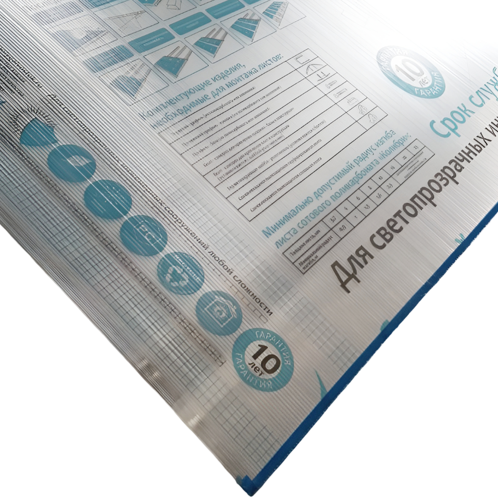 Описание поликарбоната сотового Колибри Т-4, 12000х2100х4 мм, прозрачного, с УФ-защитой