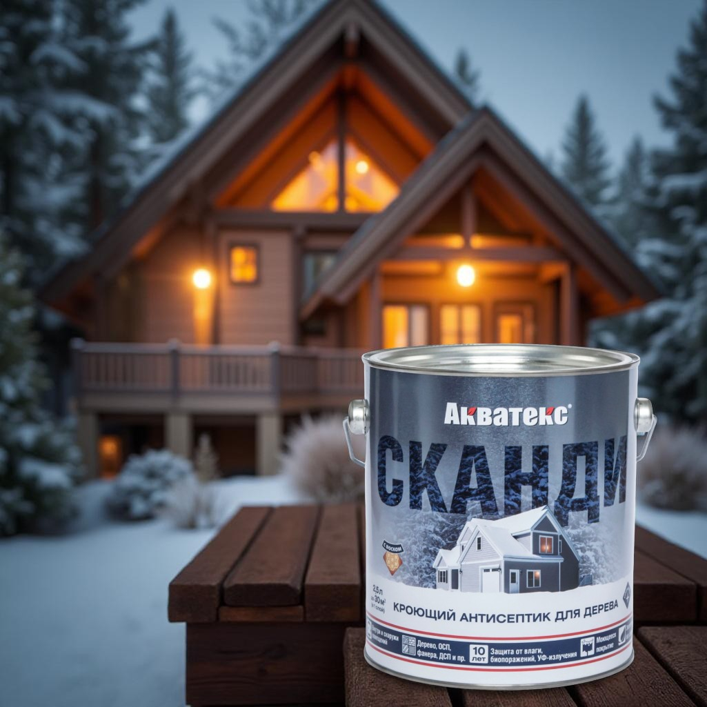 Антисептик Акватекс Сканди для дерева, кроющий Лакрица, полуматовое покрытие, 2.5 л - это надежное решение для декоративной и защитной обработки древесины. Предназначен для создания плотного кроющего покрытия, которое скрывает рисунок, но сохраняет видимую структуру древесины. Продукт эффективно защищает от влаги, биопоражений (гниения, плесени, грибка, синевы), УФ-излучения и других атмосферных воздействий, а также обновляет деревянные поверхности, ранее окрашенные алкидными или акриловыми составами.
