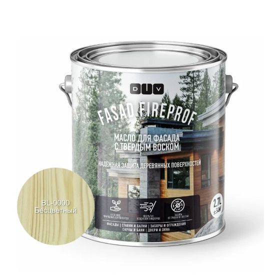 Масло DIV FASAD FIREPROF для фасада с твердым воском BL-0000 бесцветный, 2.7 л