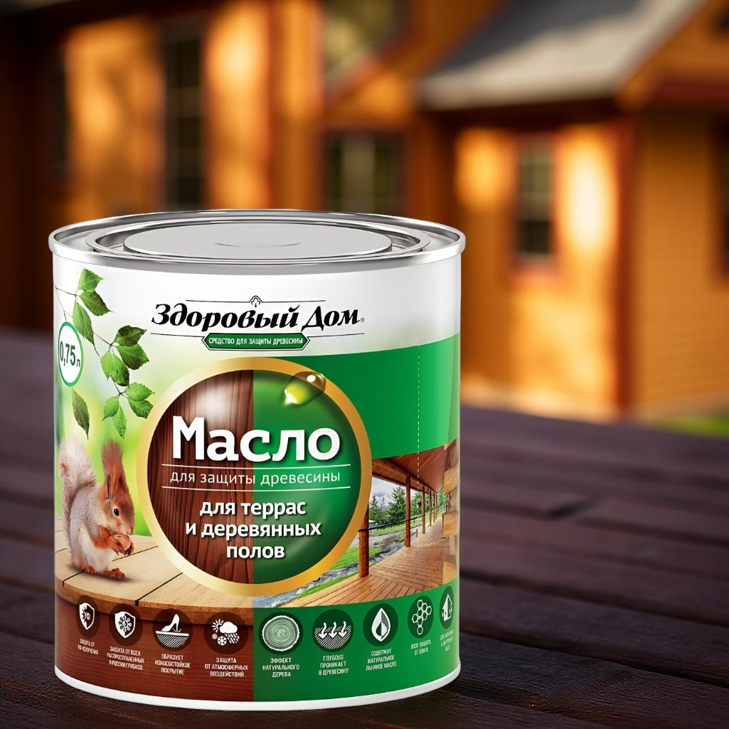 Масло Здоровый Дом для террас и деревянных полов, средство для защиты древесины, Венге, 0.75 л