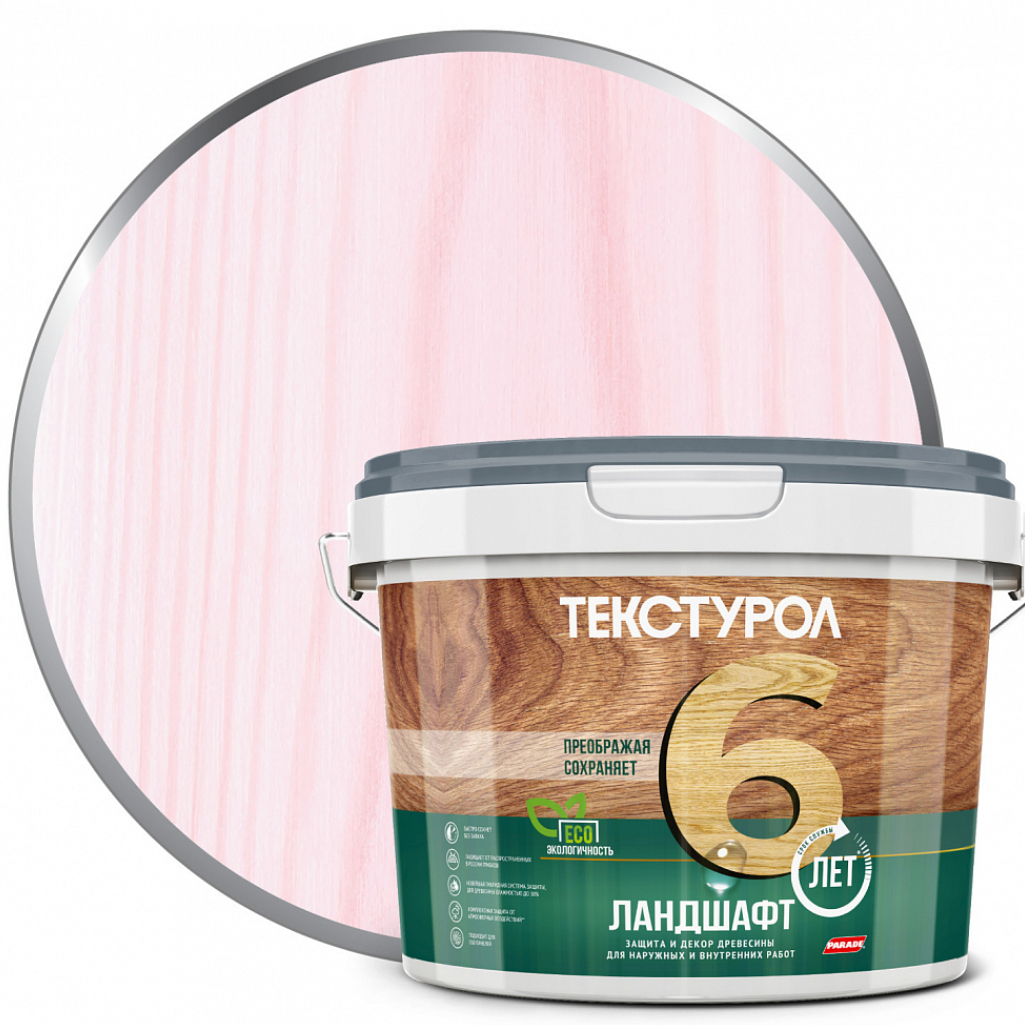 Пропитка Текстурол Ландшафт, защита и декор древесины, с воском, Чайная роза, 2.5 л - это средство защиты, созданное на водной основе. Оно сочетает в себе декоративные и защитные свойства, обладает высокой укрывистостью и подходит как для внутренних, так и для наружных работ. Предназначено для отделки деревянных изделий и конструкций, включая обшивочные доски, стеновые панели, фасады, заборы, плинтусы, древесно-волокнистые и древесно-стружечные плиты, фанеру и шпон. Рекомендуется для использования в деревянных домах, садовых постройках и заборах. Создает шелковисто-матовое покрытие, которое подчеркивает текстуру древесины, при этом обладает высокой укрывистостью. Благодаря тиксотропности, состав легко и экономично наносится, без подтеков и разбрызгивания. Можно применять на древесине с влажностью до 30%.