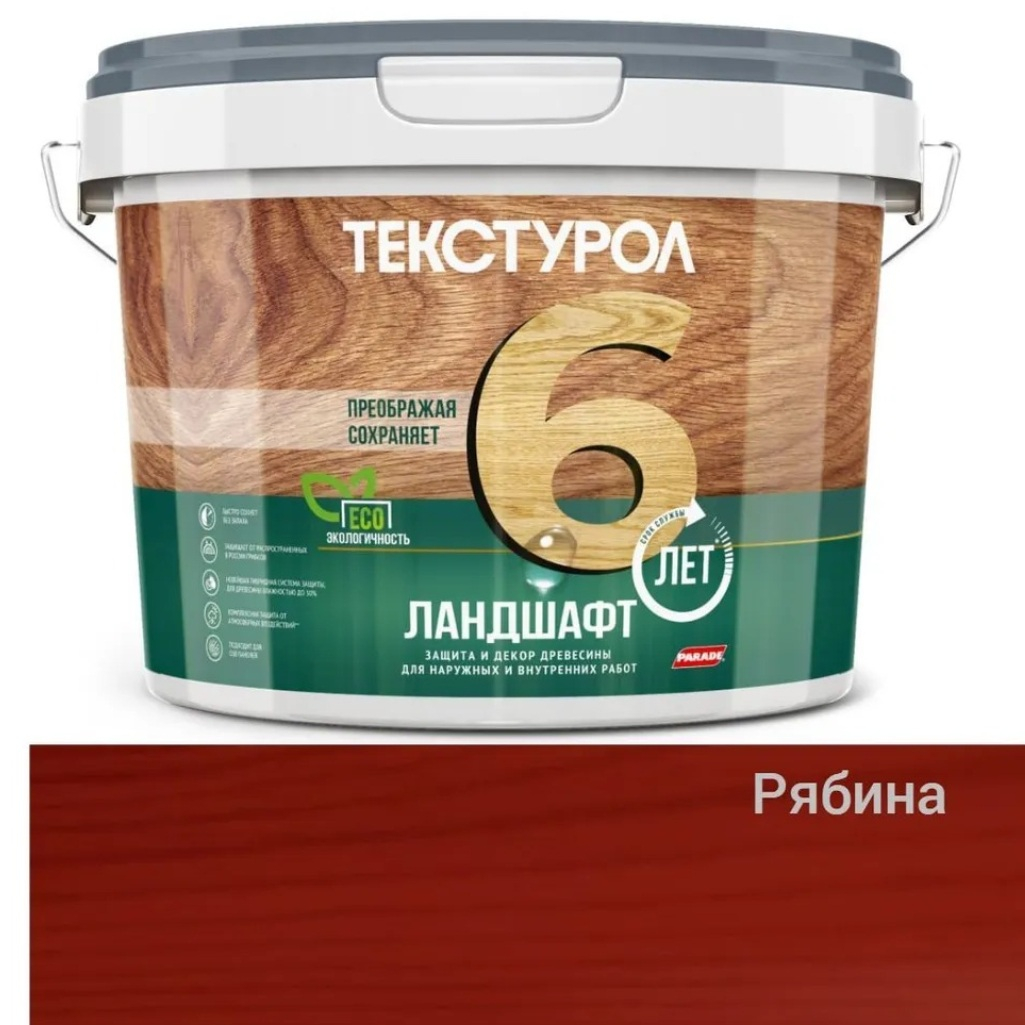 Пропитка Текстурол Ландшафт, защита и декор древесины, с воском, Рябина, 2.5 л - это средство защиты, созданное на водной основе. Оно сочетает в себе декоративные и защитные свойства, обладает высокой укрывистостью и подходит как для внутренних, так и для наружных работ. Предназначено для отделки деревянных изделий и конструкций, включая обшивочные доски, стеновые панели, фасады, заборы, плинтусы, древесно-волокнистые и древесно-стружечные плиты, фанеру и шпон. Рекомендуется для использования в деревянных домах, садовых постройках и заборах. Создает шелковисто-матовое покрытие, которое подчеркивает текстуру древесины, при этом обладает высокой укрывистостью. Благодаря тиксотропности, состав легко и экономично наносится, без подтеков и разбрызгивания. Можно применять на древесине с влажностью до 30%.
