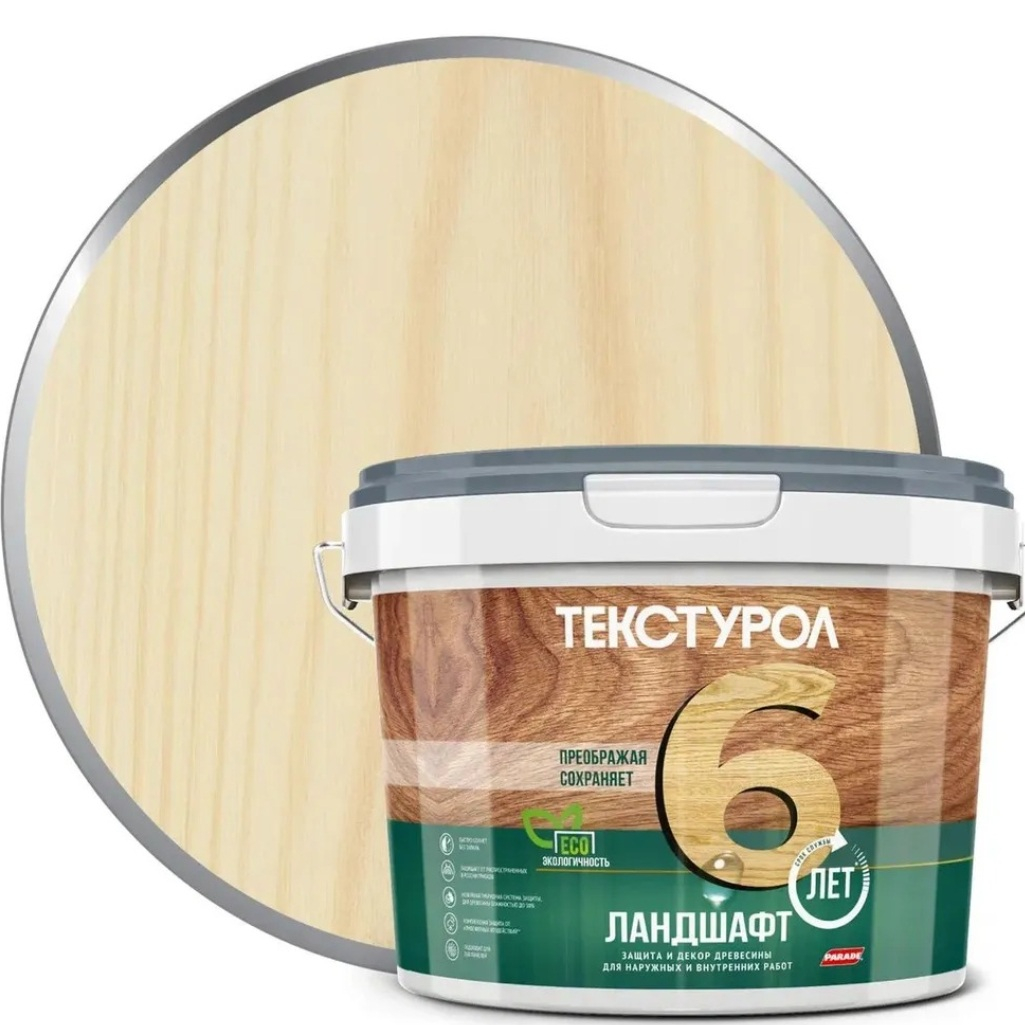 Пропитка Текстурол Ландшафт, защита и декор древесины, с воском, Ясень, 2.5 л - это средство защиты, созданное на водной основе. Оно сочетает в себе декоративные и защитные свойства, обладает высокой укрывистостью и подходит как для внутренних, так и для наружных работ. Предназначено для отделки деревянных изделий и конструкций, включая обшивочные доски, стеновые панели, фасады, заборы, плинтусы, древесно-волокнистые и древесно-стружечные плиты, фанеру и шпон. Рекомендуется для использования в деревянных домах, садовых постройках и заборах. Создает шелковисто-матовое покрытие, которое подчеркивает текстуру древесины, при этом обладает высокой укрывистостью. Благодаря тиксотропности, состав легко и экономично наносится, без подтеков и разбрызгивания. Можно применять на древесине с влажностью до 30%.