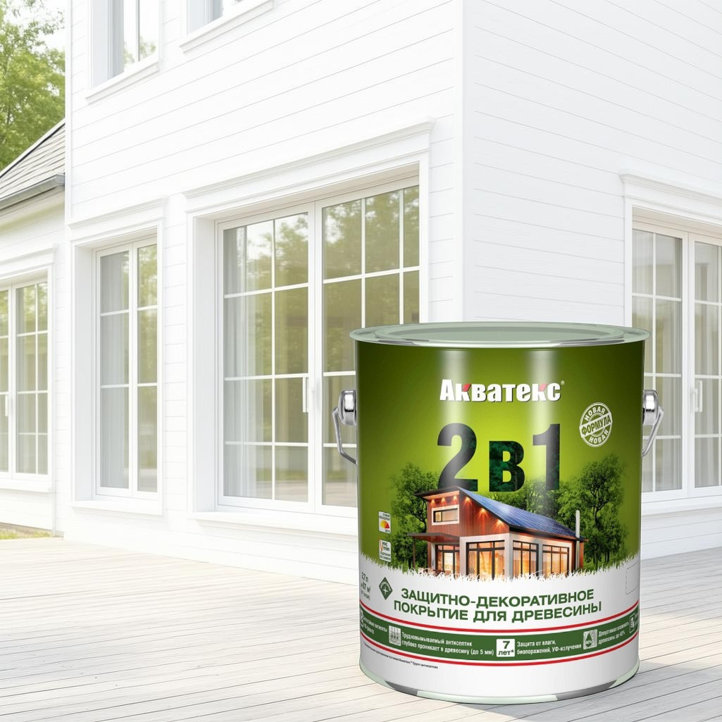 Защитно-декоративное покрытие для древесины Акватекс 2 в 1, полуматовый блеск, Белый, 2.7 л предназначено для защиты и декоративной отделки деревянных поверхностей. Это многофункциональное покрытие надежно защищает древесину от гниения, плесени, грибка, синевы, а также от ультрафиолетового излучения и атмосферных воздействий. Лессирующий состав подчеркивает природную текстуру древесины, делая ее более выразительной и эстетически привлекательной, образуя полупрозрачную плёнку, которая позволяет видеть структуру древесины и сохранять ее. Блеск полуматовый.