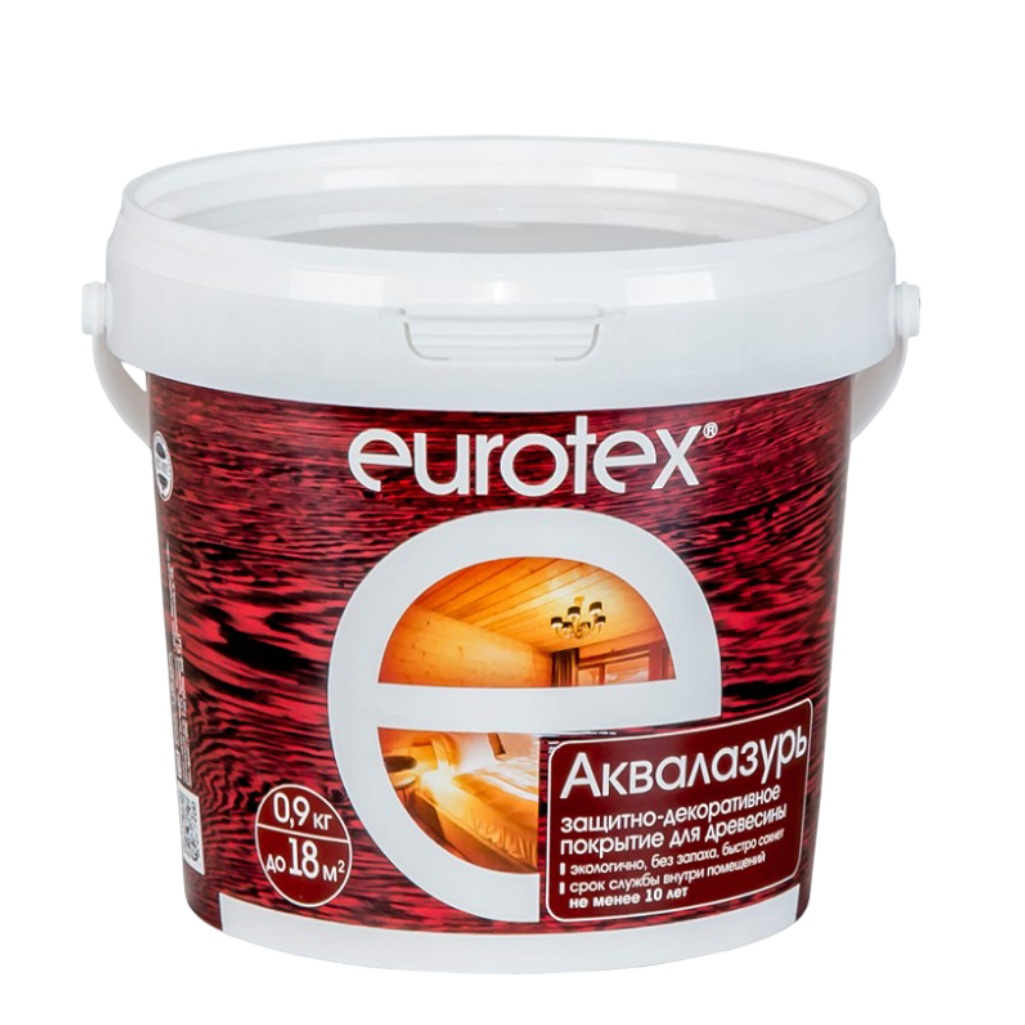 Защитно-декоративное покрытие для древесины Eurotex Аквалазурь, полуглянцевый блеск, Бесцветный, 0.9 кг в Москве