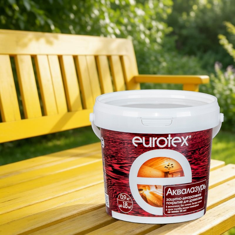 Защитно-декоративное покрытие для древесины Eurotex Аквалазурь, полуглянцевый блеск, Сосна, 0.9 кг в Москве