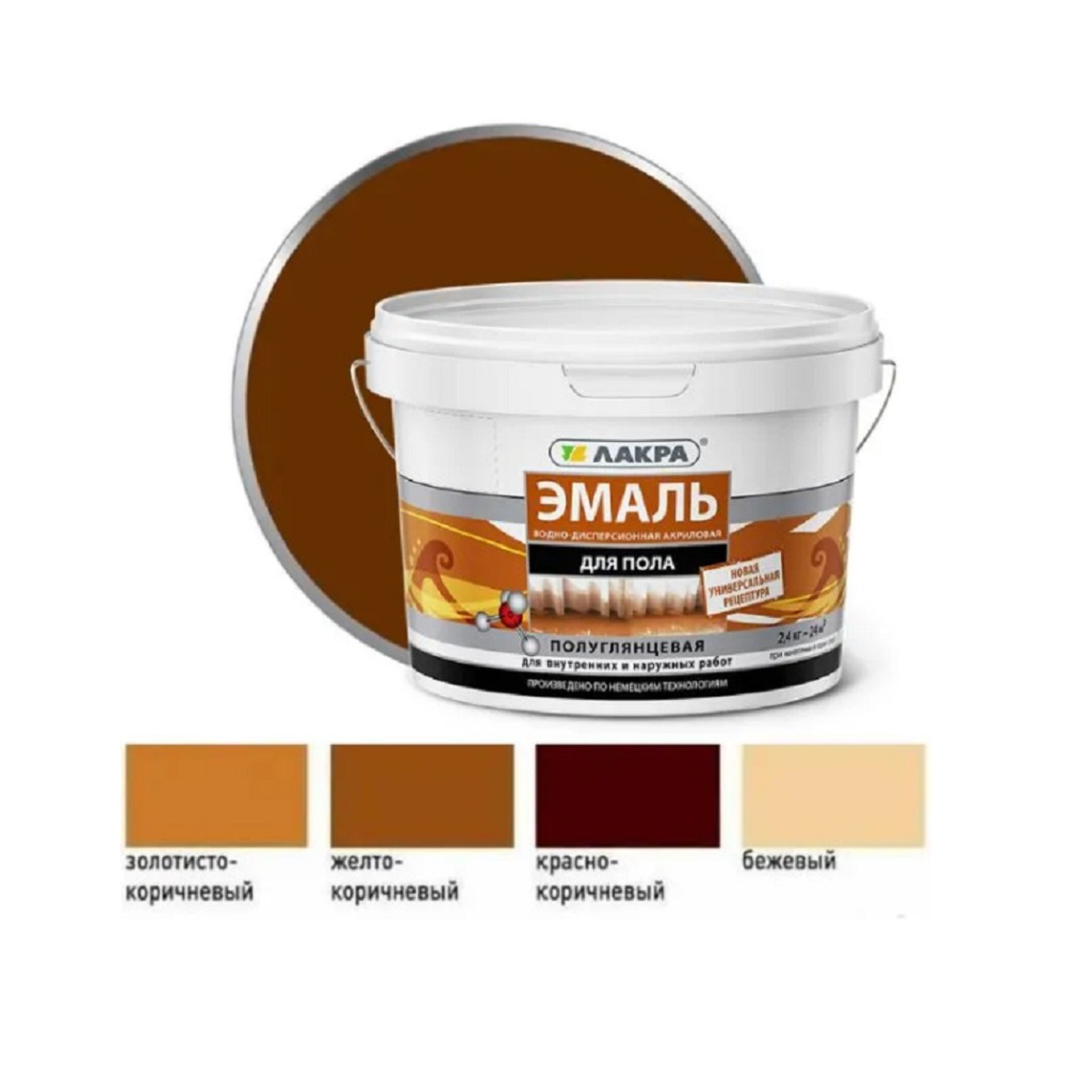 Описание эмали для пола Лакра 0008100 для внутренних и наружных работ, Желто-коричневый, 2.4 кг