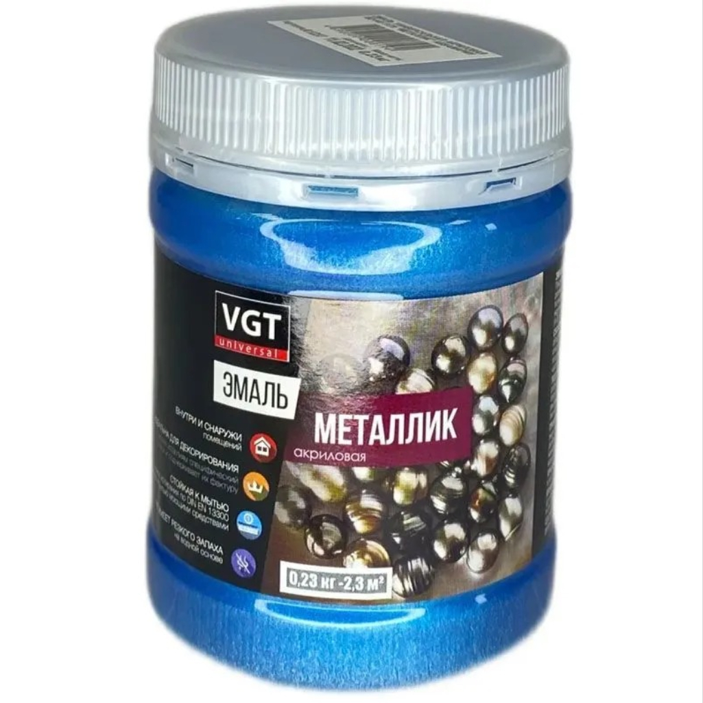 - Эмаль VGT ВД-АК-1179 универсальная, металлик, аквамарин 0,23кг