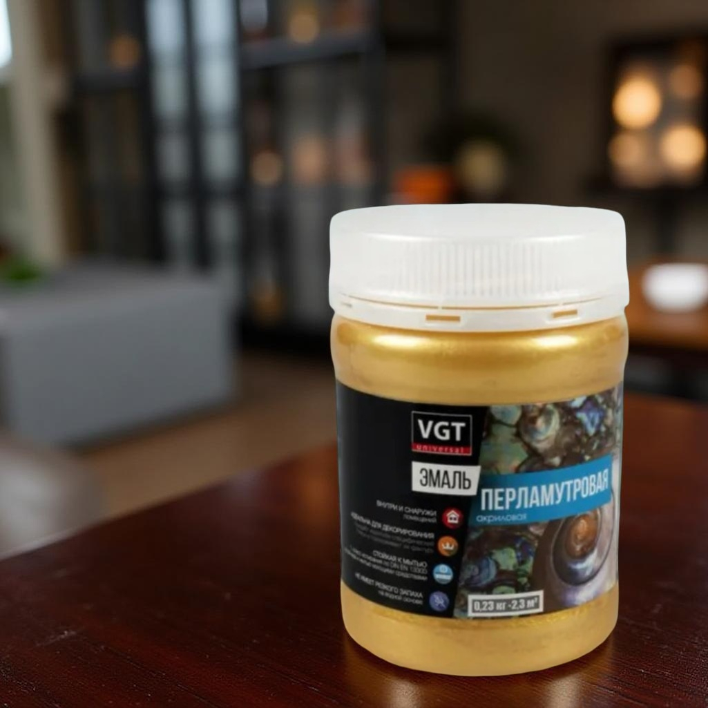 - Эмаль VGT ВД-АК-1179 универсальная, перламутровая, золото 0,23кг