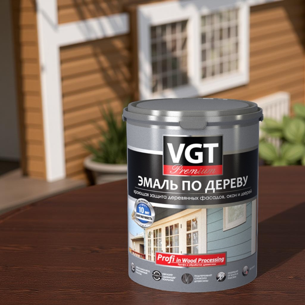 Эмаль акриловая VGT ВД-АК-1179 Профи по дереву, кофейная, 2.5 кг - это высококачественная специализированная эмаль на основе акрилового связующего для окраски новых и ранее окрашенных деревянных фасадов, окон и плит OSB (ориентировано-стружечных плит).