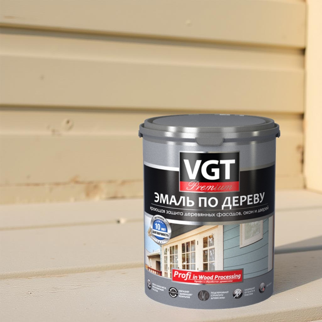Эмаль акриловая VGT ВД-АК-1179 Профи по дереву, кремовая, 1 кг - это высококачественная специализированная эмаль на основе акрилового связующего для окраски новых и ранее окрашенных деревянных фасадов, окон, дверей, мебели и других деревянных конструкций. Применяется для наружных и внутренних работ. Эмаль обладает высокой стойкостью к потере глянца и выцветанию, а благодаря эластичной плёнке устойчива к растрескиванию, образует дышащее покрытие, гидрофобную пленку. Подтвержденная долговечность покрытия на фасадах до 10 лет. Эмаль имеет хорошие грязеотталкивающие свойства. Эмаль защищает от влаги и плесени, подчеркивая структуру древесины и придавая ей шелковистый блеск. Состав легко наносится, экономичен в расходе, не имеет запаха.