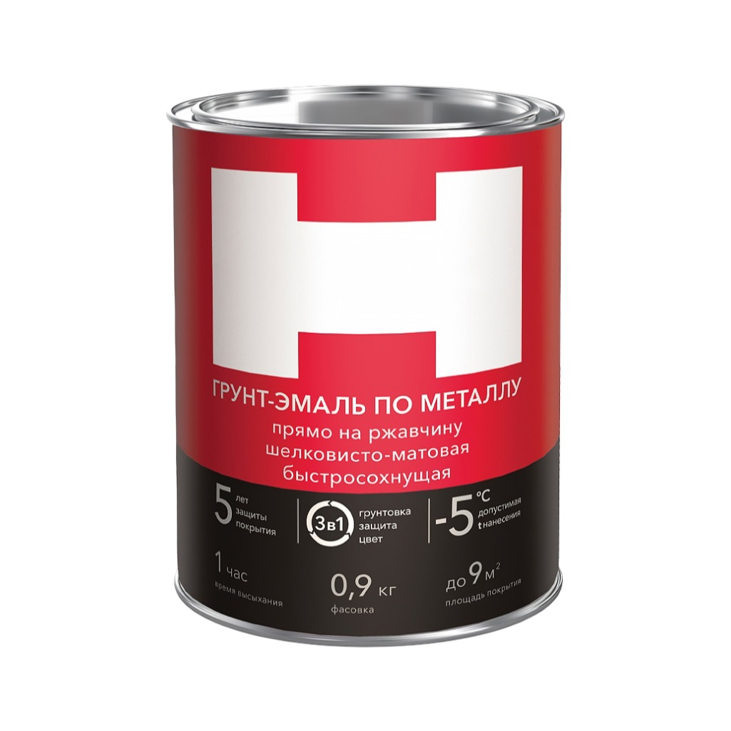 Грунт-эмаль H по металлу, 3 в 1, быстросохнущая шелковисто-матовая белая 0.9 кг - это инновационное решение для защитно-декоративной окраски металлических поверхностей. Превосходно подходит для внутренних и наружных работ, обеспечивая надежную защиту и декоративный эффект.