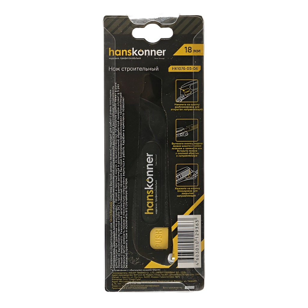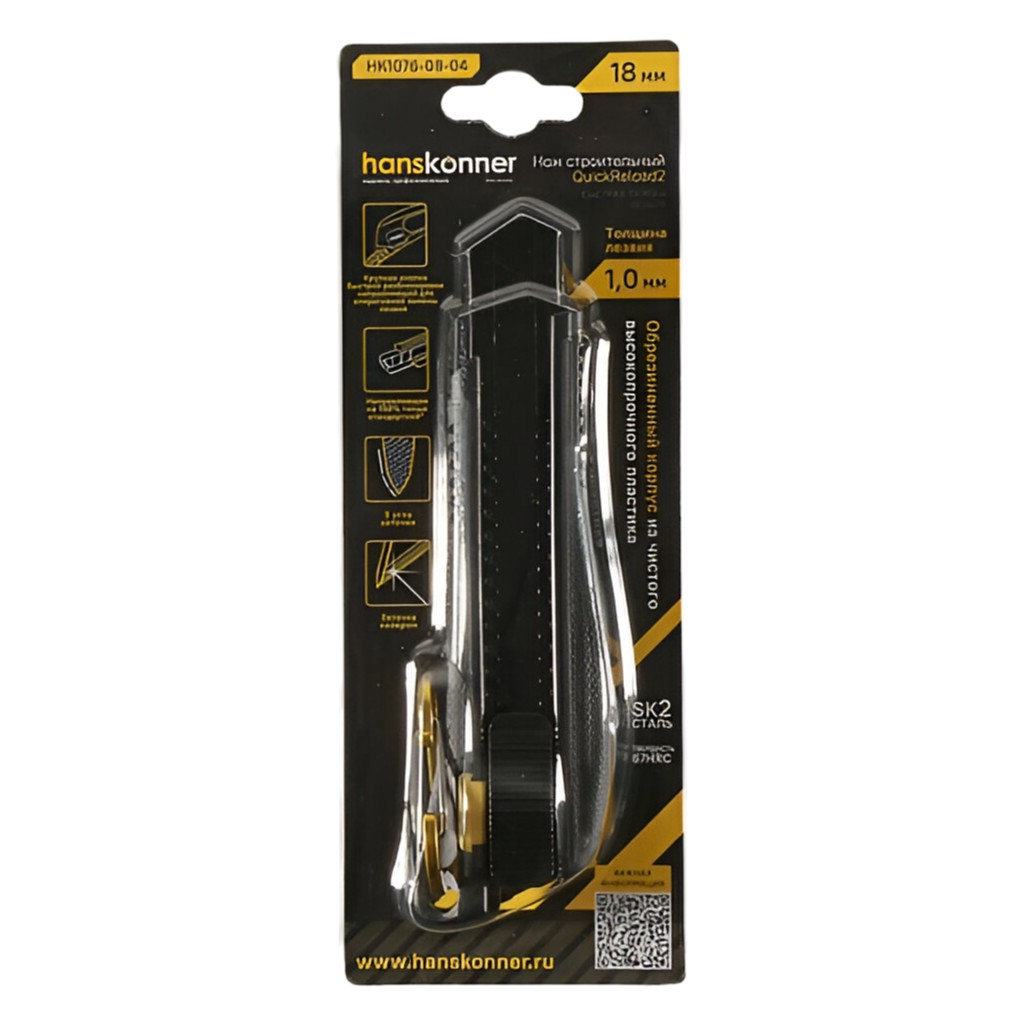 Нож строительный Hanskonner HK1076-08-04, ширина лезвия 18 мм, сталь