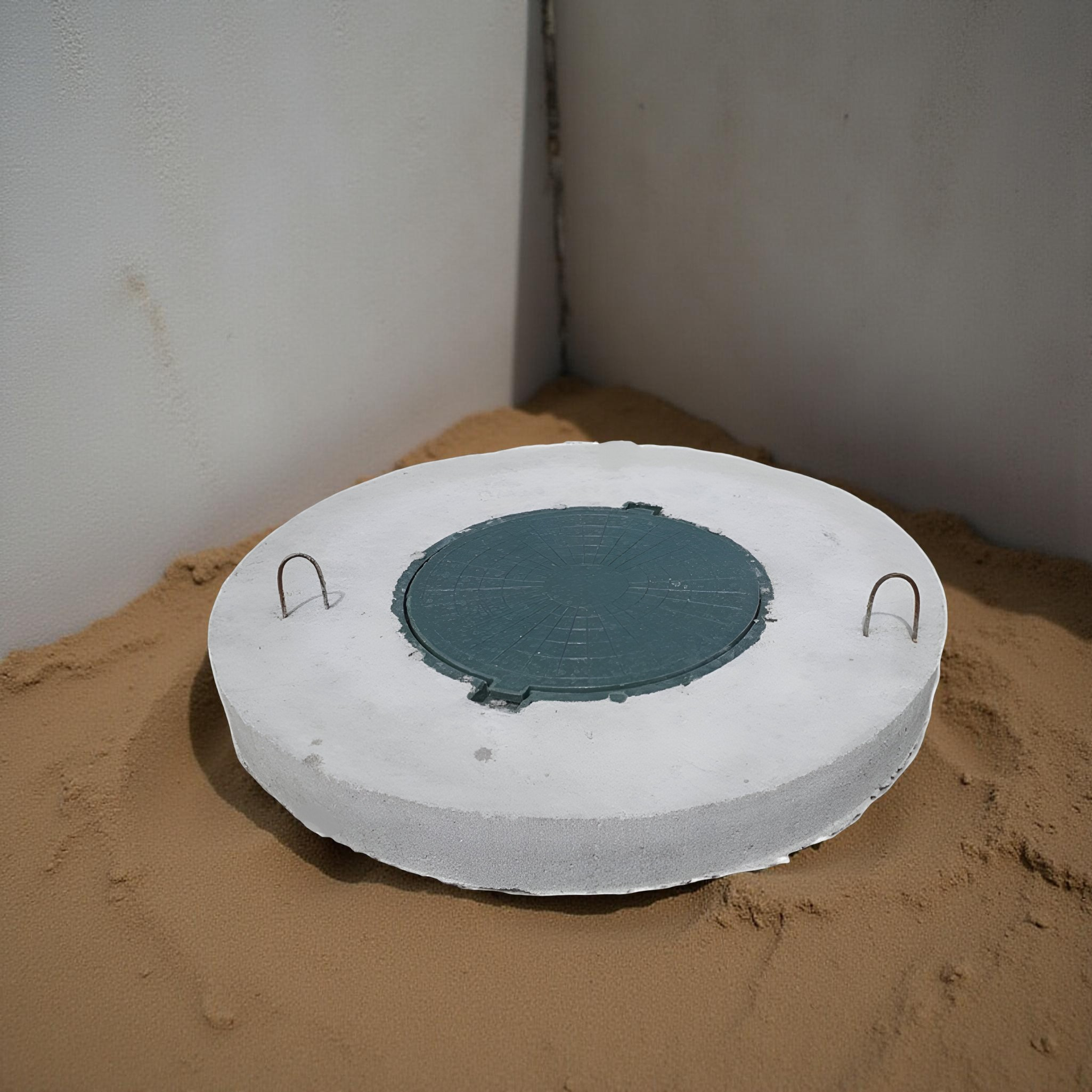Железобетонные крышки, такие как эта, являются ключевыми конструкционными элементами водопроводных и канализационных систем. Они надежно защищают колодезные шахты от попадания внутрь осадков, грязи, пыли и мусора, тем самым значительно продлевая срок службы системы.
