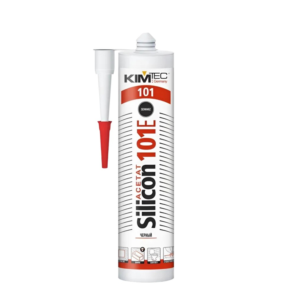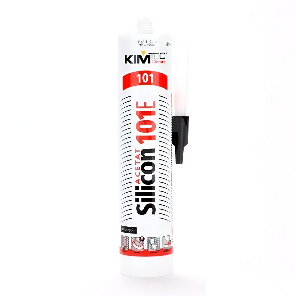 Герметик Kim Tec Silicon 101 Е, для дерева и плитки, черный, 280 мл — это высококачественный однокомпонентный силиконовый каучук, который идеально подходит для герметизации и склеивания различного рода поверхностей. Этот герметик черного цвета быстро превращается в резинообразный, устойчивый уплотнитель под воздействием влаги воздуха.