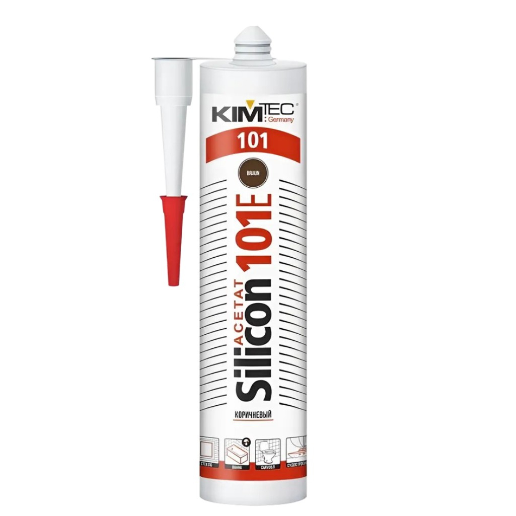 Герметик Kim Tec Silicon 101 Е, для внутренних и наружных работ, коричневый, 280 мл — высококачественный однокомпонентный силиконовый каучук, идеально подходящий для герметизации и склеивания различных поверхностей. Под воздействием влаги воздуха быстро превращается в эластичный резинообразный уплотнитель, обеспечивая надежную герметизацию и долговечное склеивание.