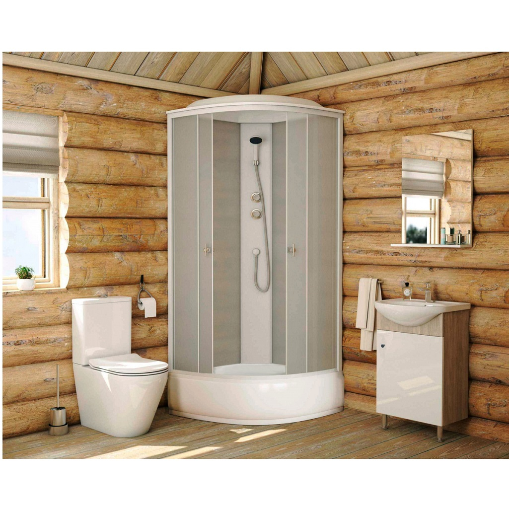 Ориентация кабины угловая, форма - четверть круга, гарантия составляет 10 лет.