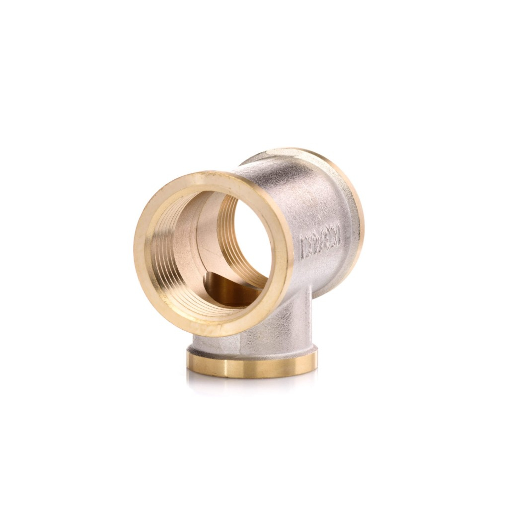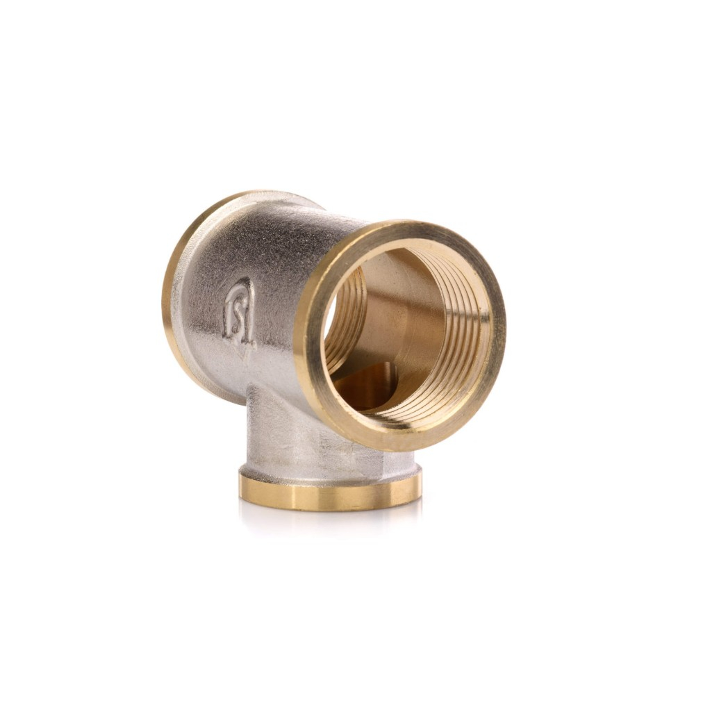 Тройник равнопроходной, TST 1"-1"-1", ВР-ВР-ВР, TST.141.050505, резьбовой, латунь предназначен для создания разветвлений в трубопроводных системах. Изделие с внутренней резьбой 1" на всех трех выходах позволяет соединять трубы одинакового диаметра под прямым углом. Латунный корпус обеспечивает устойчивость к коррозии и механическим нагрузкам. Рабочие параметры: давление до 16 бар, температура от -30 до +120°C, что позволяет использовать тройник в системах отопления, ГВС, ХВС и питьевого водоснабжения. Герметичность соединения достигается за счет точной обработки резьбы и применения уплотнительных материалов. Подходит для профессионального монтажа в жилых и промышленных объектах. Простота установки и долговечность делают этот тройник надежным решением для трубопроводных систем.