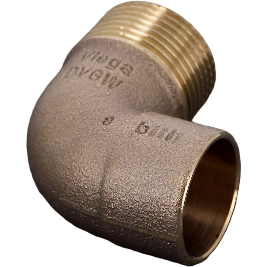 Угольник 90 гр. переходной Viega 28-3/4", пайка-НР, для медных труб, бронза представляет собой фитинг, предназначенный для изменения направления трубопровода при переходе от пайки к наружной резьбе для соединения медных труб в системах холодного и горячего водоснабжения, напольного и центрального отопления, для распределения воздуха и сантехнического оборудования, при прокладке технологических трубопроводов.