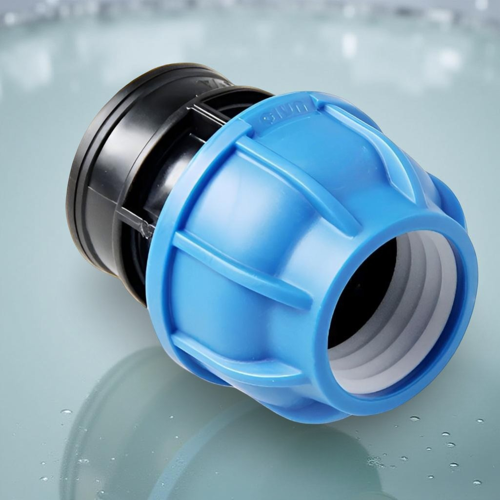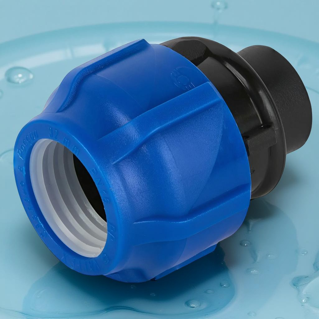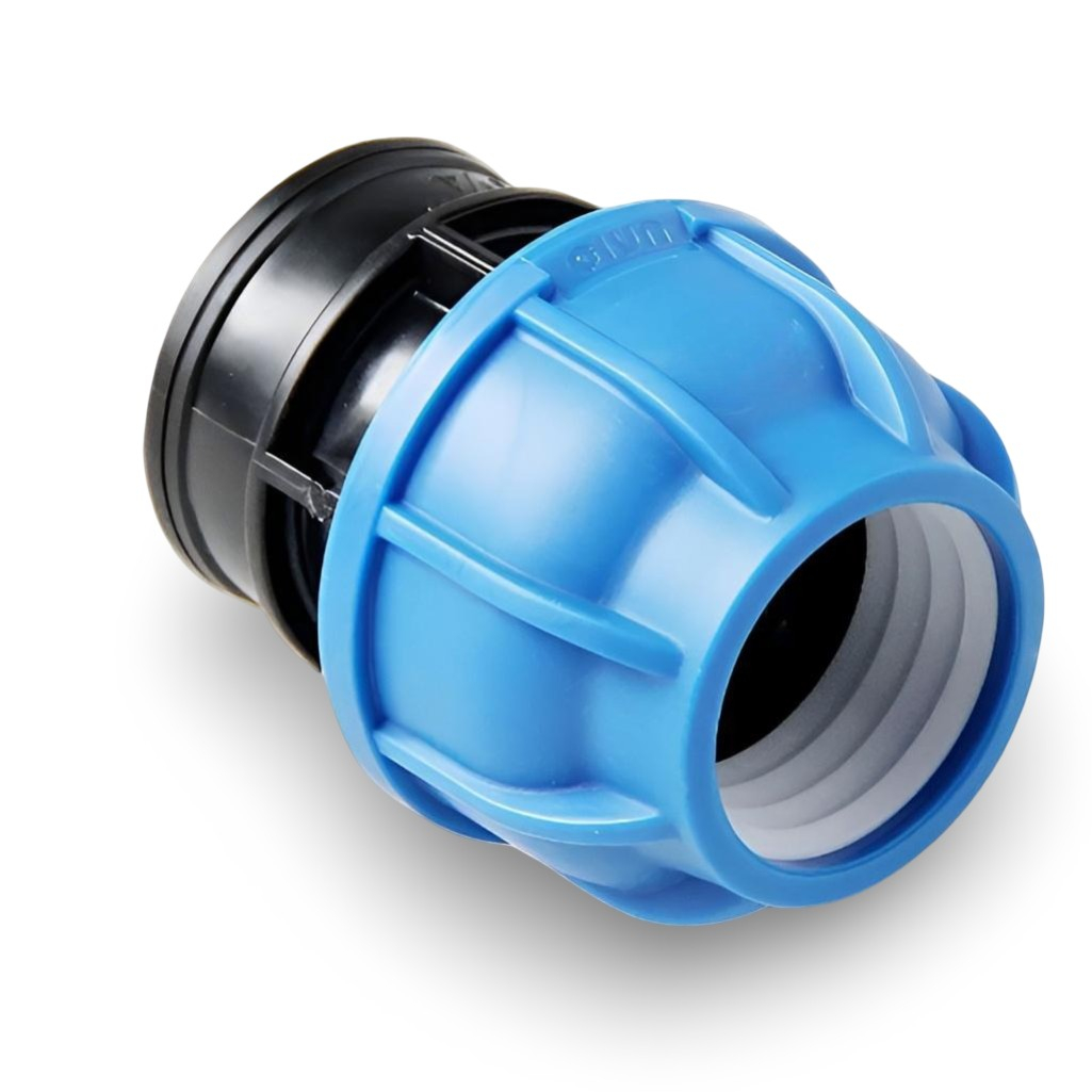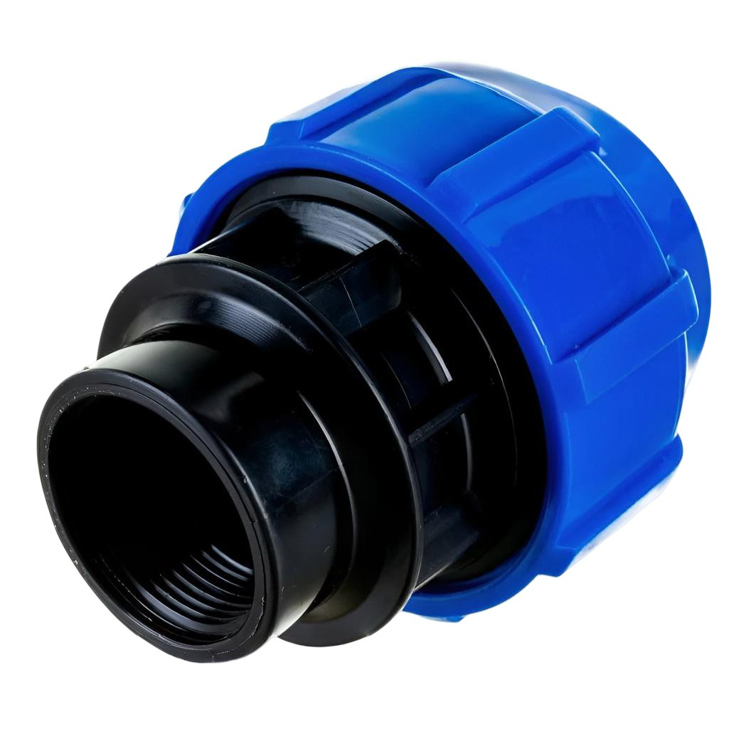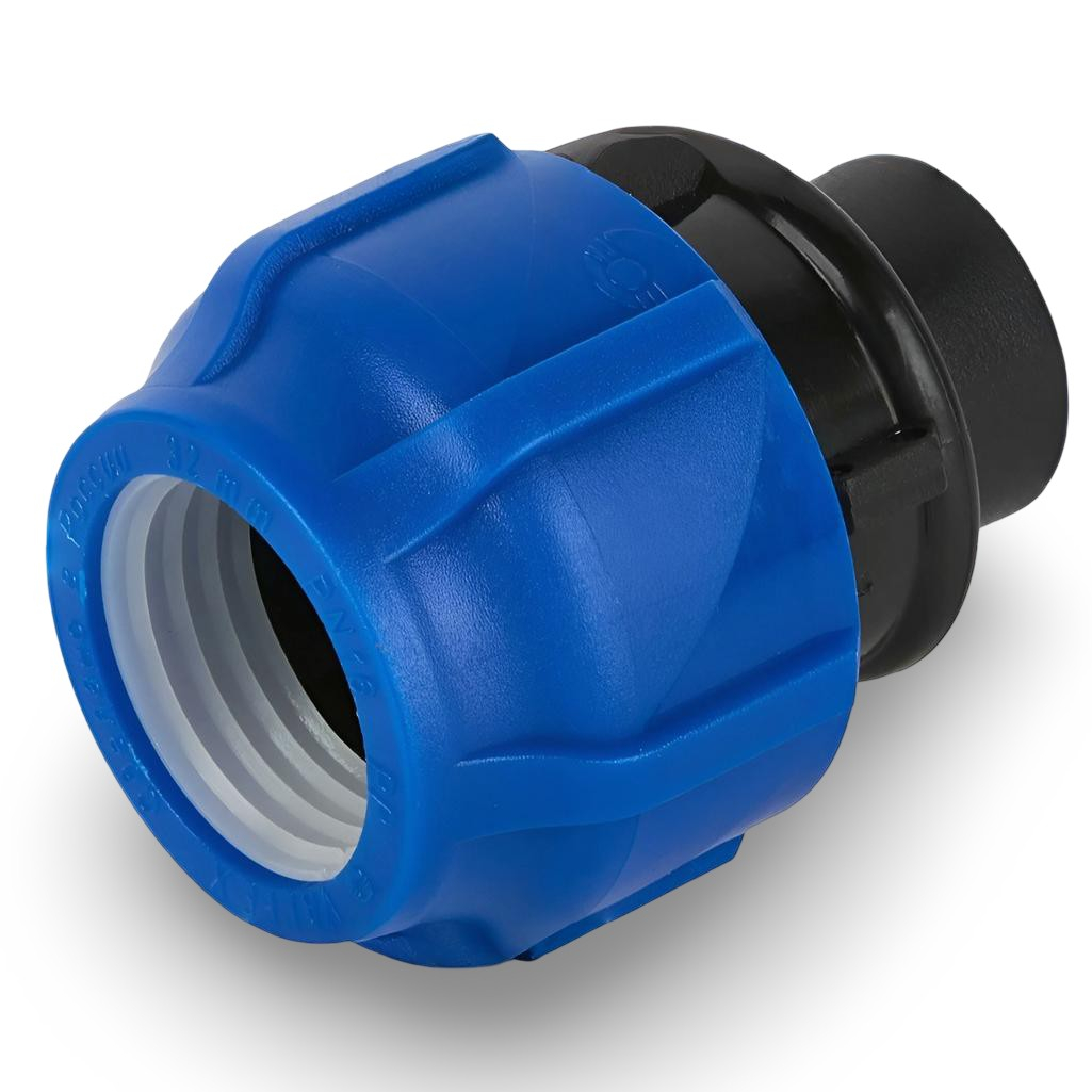 Муфта переходная, компрессионная ПНД 50-1 1/2" ВР, с внутренней резьбой для трубопровода