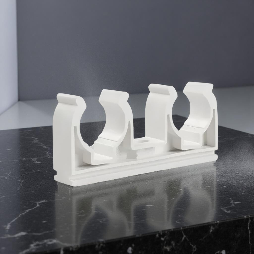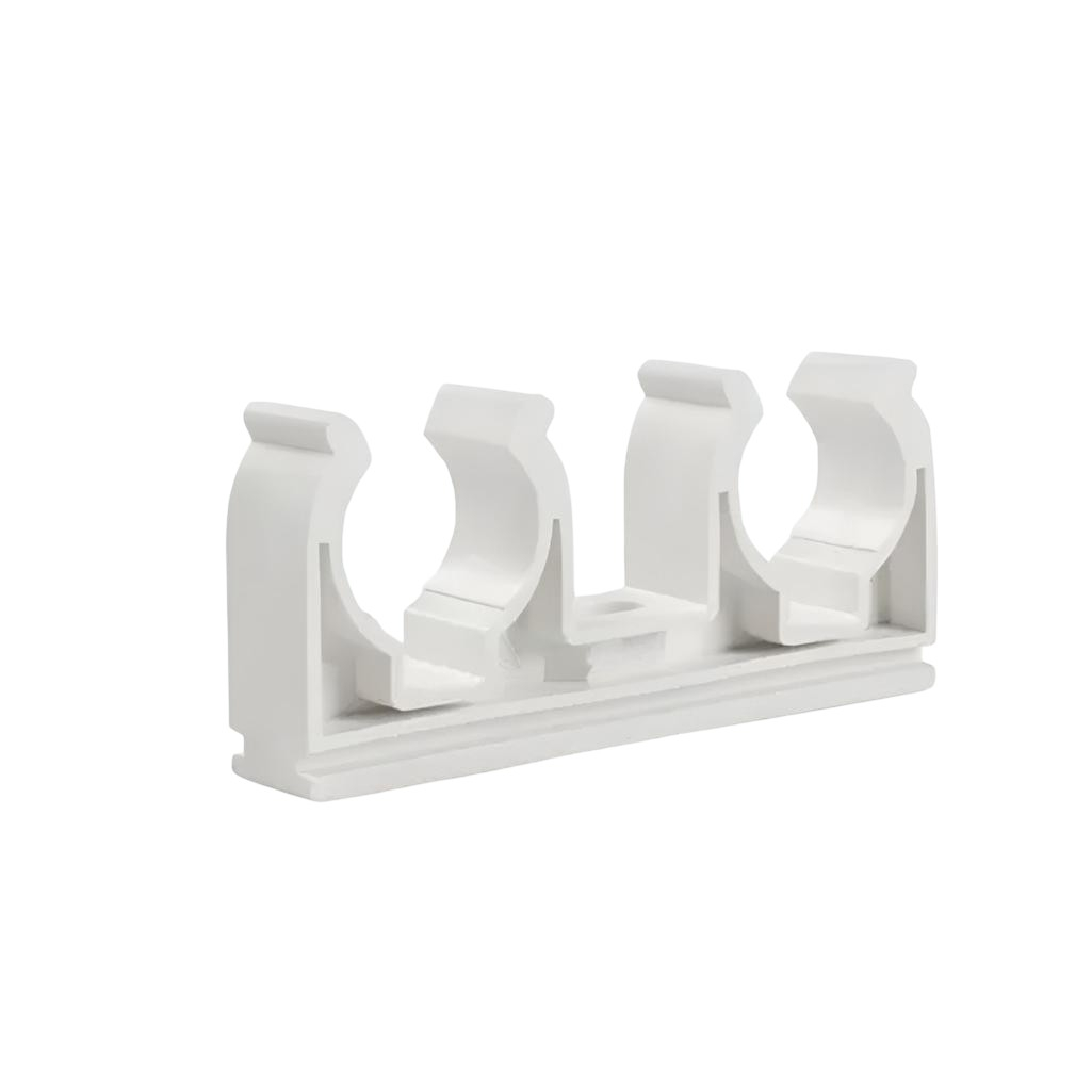 Описание клипсы крепежа полипропиленовой Pro Aqua PA18510P, 25 мм, двойной, без зажима, для труб, белая