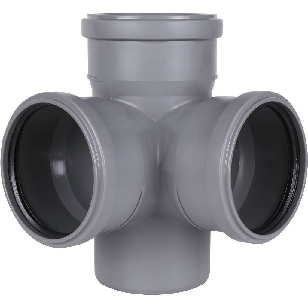 Крестовина двухплоскостная, 512041.R, d 110х110х110 мм, 87 градусов, серая предназначендля соединения четырёх труб в одной точке, образуя два перпендикулярных направления (двухплоскостной). Используется преимущественно в канализационных системах, водопроводах и инженерных сетях. Универсальность крепления и надежная конструкция позволяют применять её как в горизонтальных, так и вертикальных коммуникациях. Изделие изготовлено из высококачественного пластика, устойчивого к воздействию влаги, грязи и механических нагрузок.