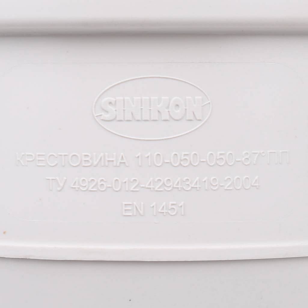 Крестовина одноплоскостная 87 гр., Sinikon Comfort 506011.K, диаметр 110х50 мм, белая — полипропиленовая фасонная деталь для подключения двух отводных линий диаметром 50 мм к стояку 110 мм в системах внутренней канализации. Обеспечивает перпендикулярное соединение в одной плоскости.