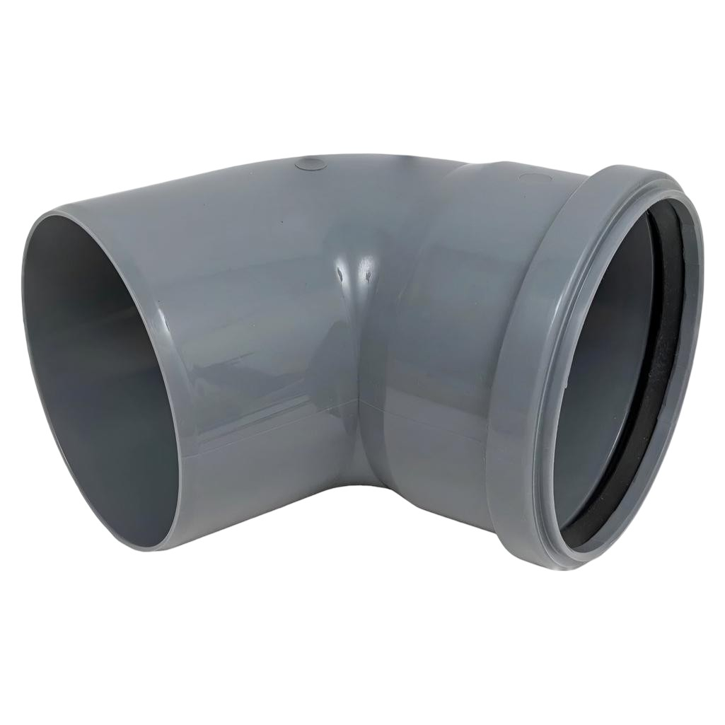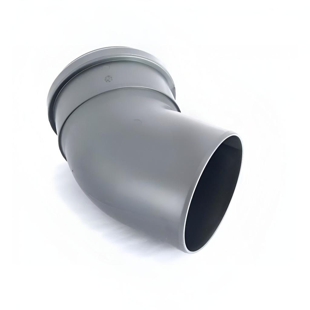 Отвод канализационный 45 гр. Sinikon 504053R диаметр 110 мм, серый — фасонная деталь для плавного изменения направления внутренней канализационной системы. Изготовлен из прочного полимера, устойчивого к агрессивным средам, перепадам температур и световому старению. Конструкция предотвращает образование засоров и обеспечивает долгий срок службы.