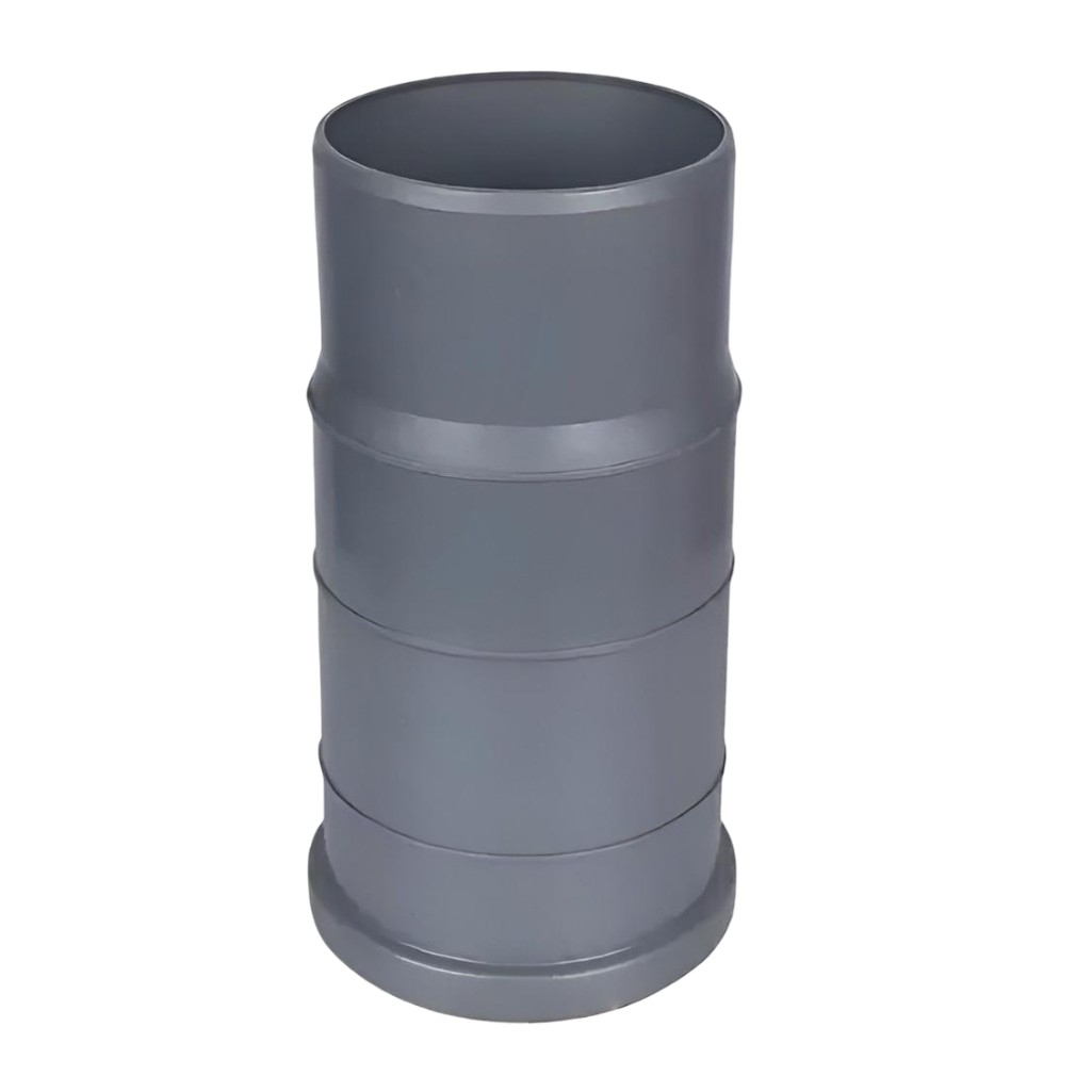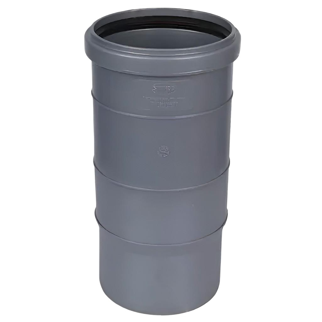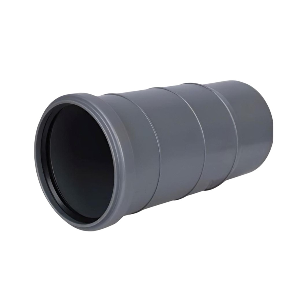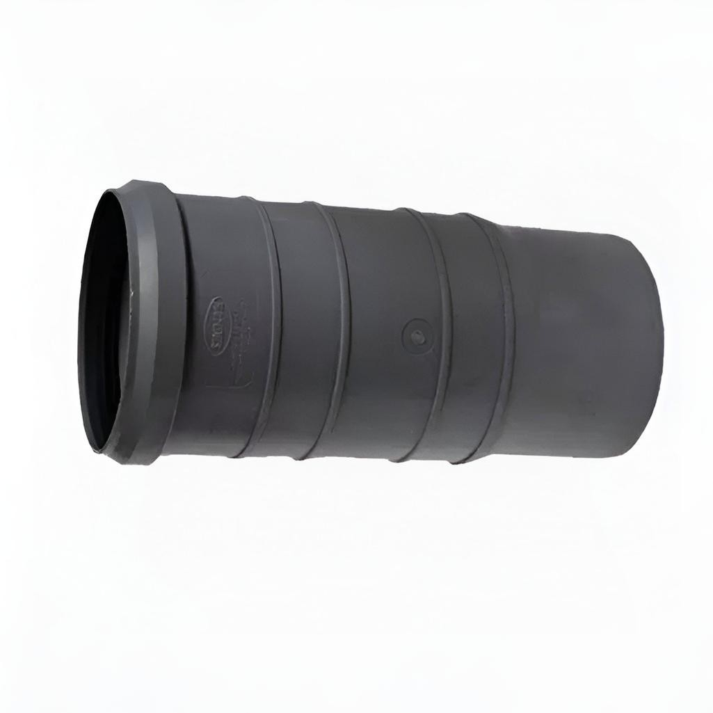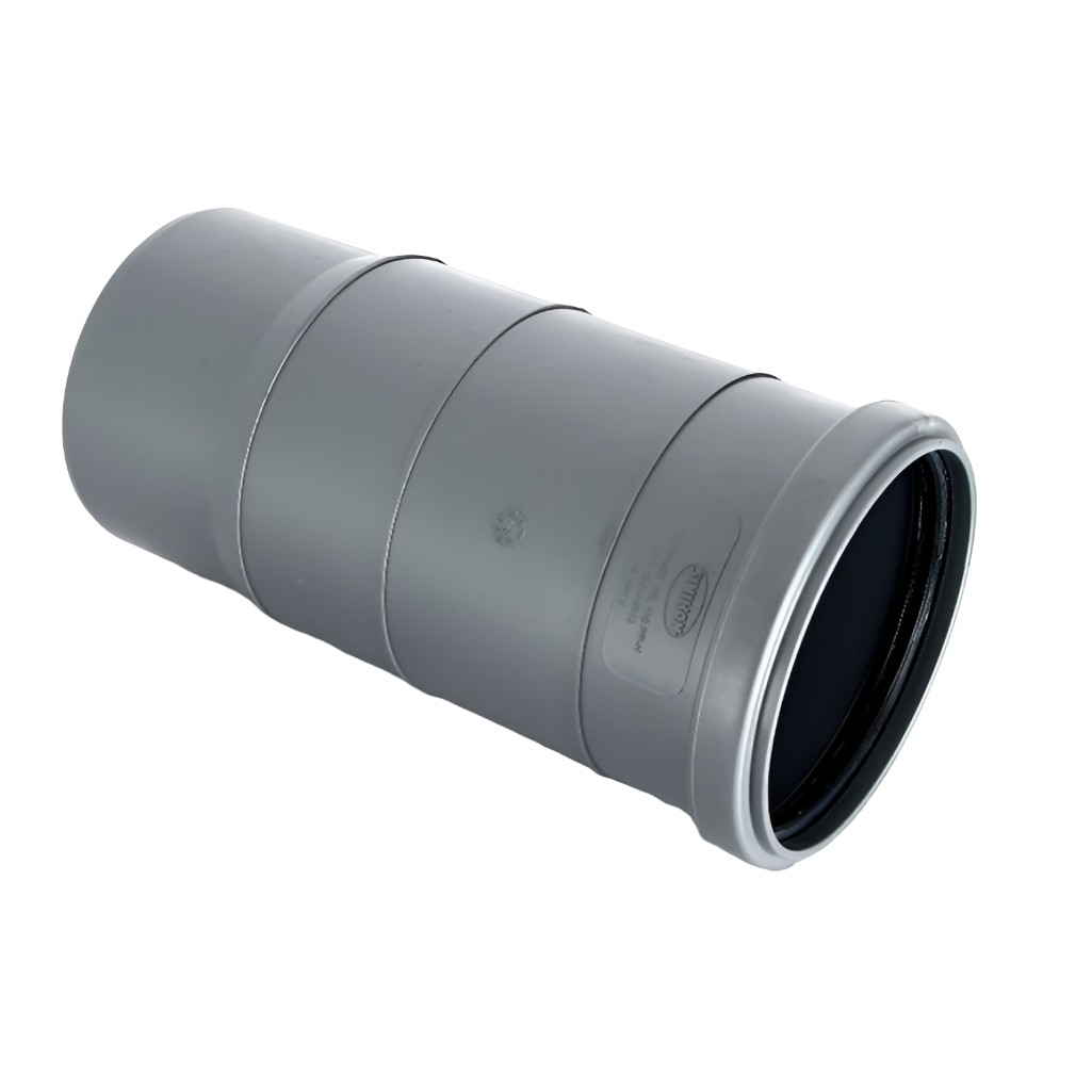 Патрубок компенсационный Sinikon Standart 531011.R, диаметр 110 мм, серый — полипропиленовый ремонтный элемент для восстановления повреждённых участков канализационных стояков и стоков. Удлинённый раструб позволяет компенсировать изменения длины трубопровода и обеспечивает глубокую посадку трубы.