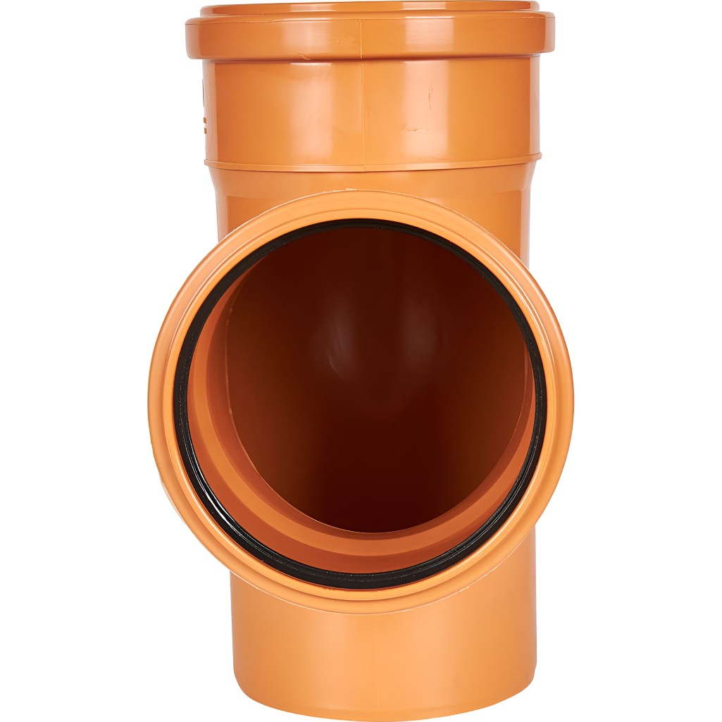 Тройник канализационный 87 гр., диаметр 200х200 мм, ПВХ, красный — фасонная деталь из ПВХ для разветвления наружных канализационных систем. Предназначен для создания ответвлений под углом 87 градусов от магистральной линии того же диаметра.