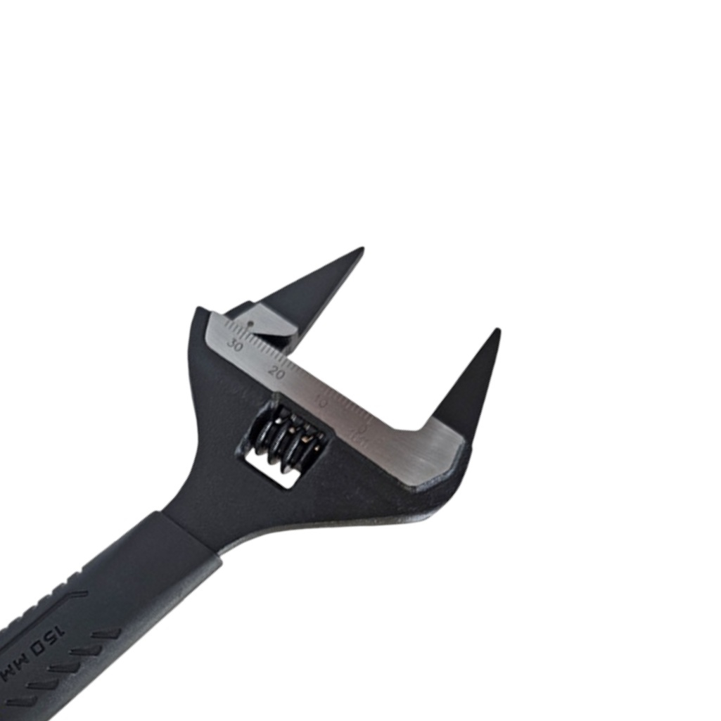Ключ разводной Hanskonner HK1045-30-150, усиленный, длина 150 мм - это гаечный ключ с регулируемым хватом, который предназначен для вращения гаек, болтов и других деталей. Его конструкция обеспечивает надёжную фиксацию благодаря удлинённым на 40 % рабочим губкам по сравнению с обычными разводными ключами. Зев губок увеличен на 70 %, что позволяет работать с более крупными крепежными элементами. Тонкие губки, которые на 45 % уже стандартных, облегчают работу в ограниченном пространстве и с мелкими деталями. Инструмент имеет фосфатированное покрытие, защищающее его от внешних воздействий.