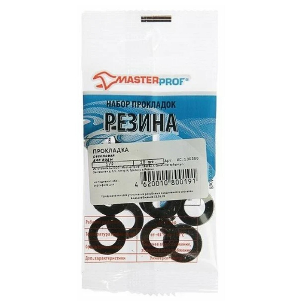 Прокладка резиновая MasterProf, 1/2", 10 штук, для систем водоснабжения и отопления