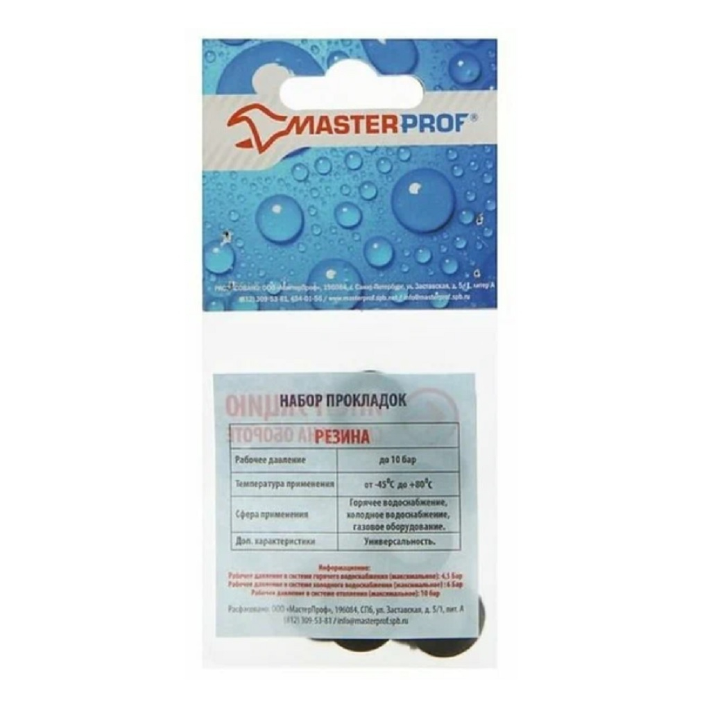 Технические характеристики прокладки резиновой MasterProf, 1/2", 10 штук, для систем водоснабжения и отопления