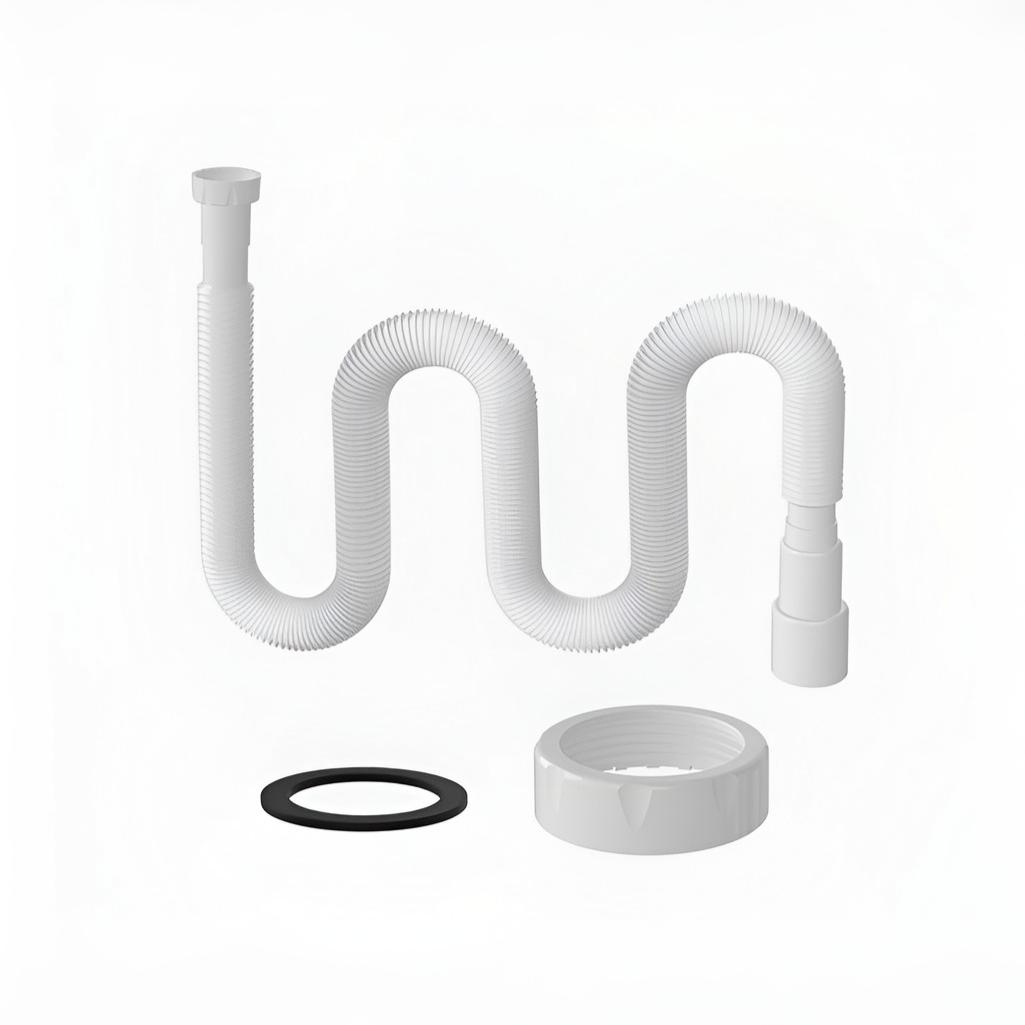 Труба гофрированная McAlpine Nova 1315 гибкая, раздвижная с гайкой, вход 1 1/2", выход 40/50 мм, длина 740 мм, белая применяется для подключения сифонов моек и раковин к системе канализации. Вход с резьбой 1½" и накидной гайкой подходит для стандартных сифонов, выход диаметром 40/50 мм соединяется с канализационным отводом.