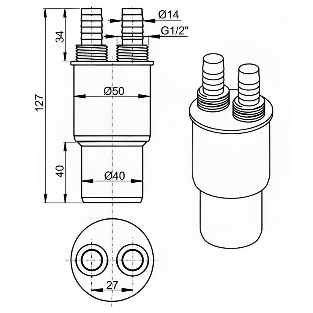 • Универсальное подключение: может быть установлен на канализационные трубы диаметром 40 мм или 50 мм.
